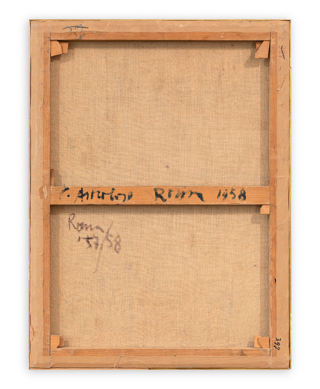 Firma, datazione e località (Roma) al retro, sulla tela e sul telaio