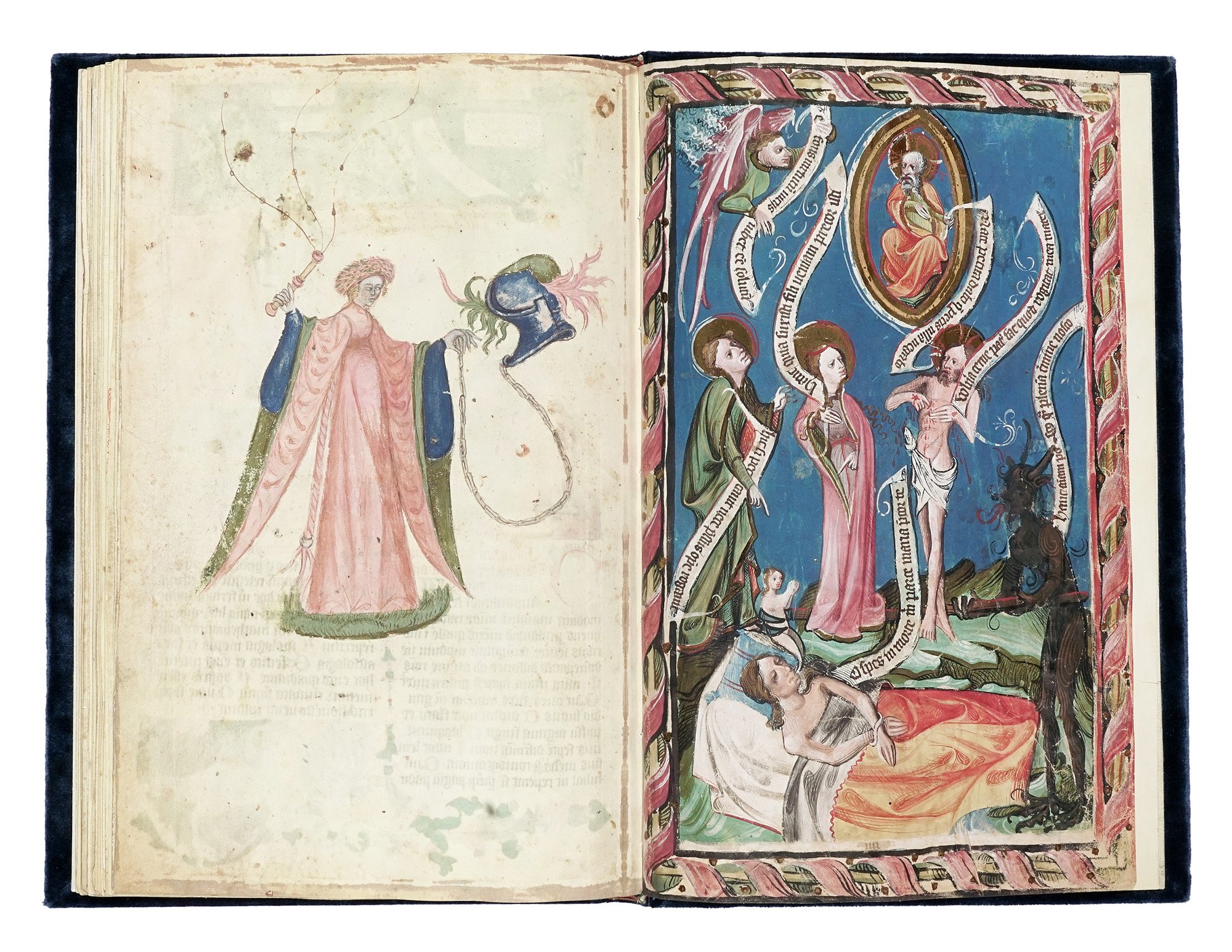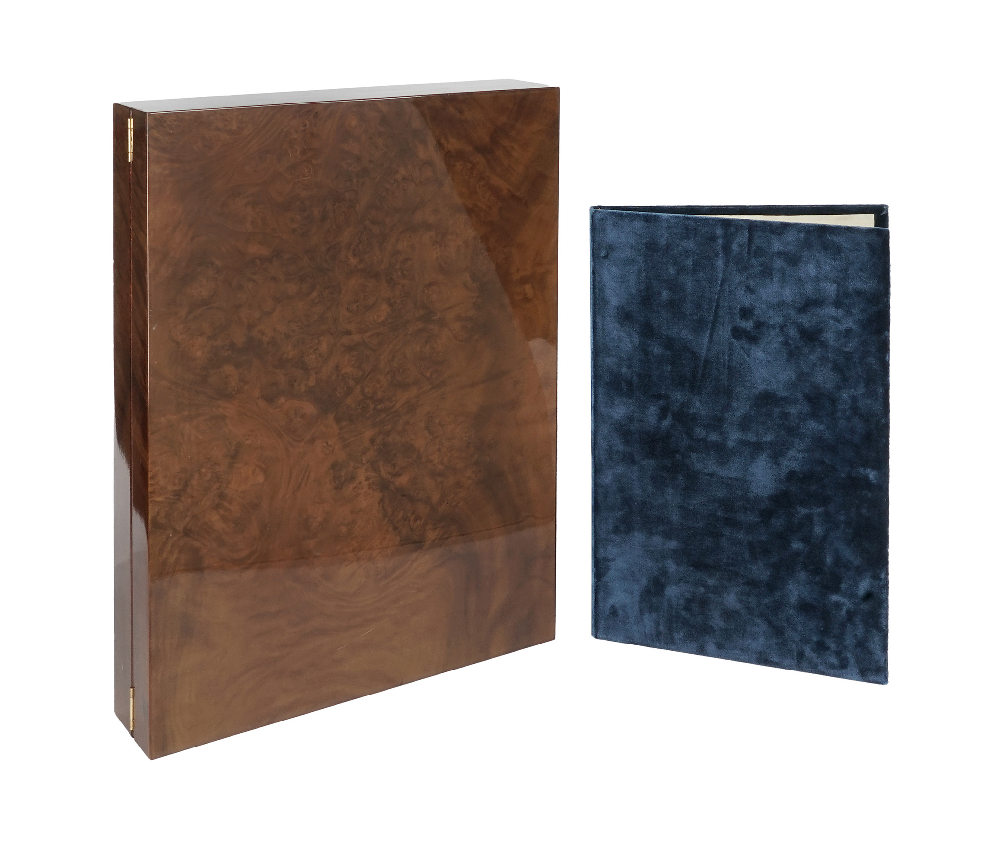 1 volume in-4° (mm 379x235) contenente il facsimile dell'opera in elegante legatura in velluto blu e 1 volume di Commentario in-8° (mm 270x175). Il tutto perfettamente conservato entro splendido cofanetto in radica, con piatto posteriore in pelle e fermaglio dorato. Un graffio e una piccola ammaccatura al piatto anteriore del cofanetto, altrimenti ottimo esemplare. Tiratura in 300 esemplari numerati. (2) Riproduzione dettagliata a colori del codice trecentesco dell'opera di Convenevole in cui la città di Prato si rivolge al re di Napoli, Roberto d'Angiò, mettendosi sotto la sua protezione e deplorando la situazione politica italiana. Peculiare l'apparato iconografico, realizzato da Pacino da Buonaguida, con miniature di notevoli dimensioni.