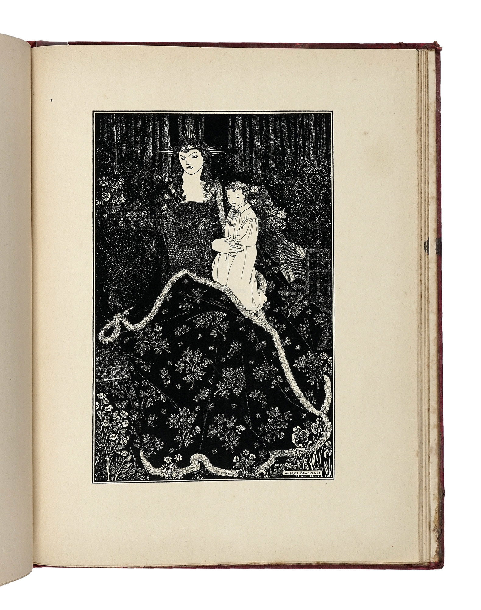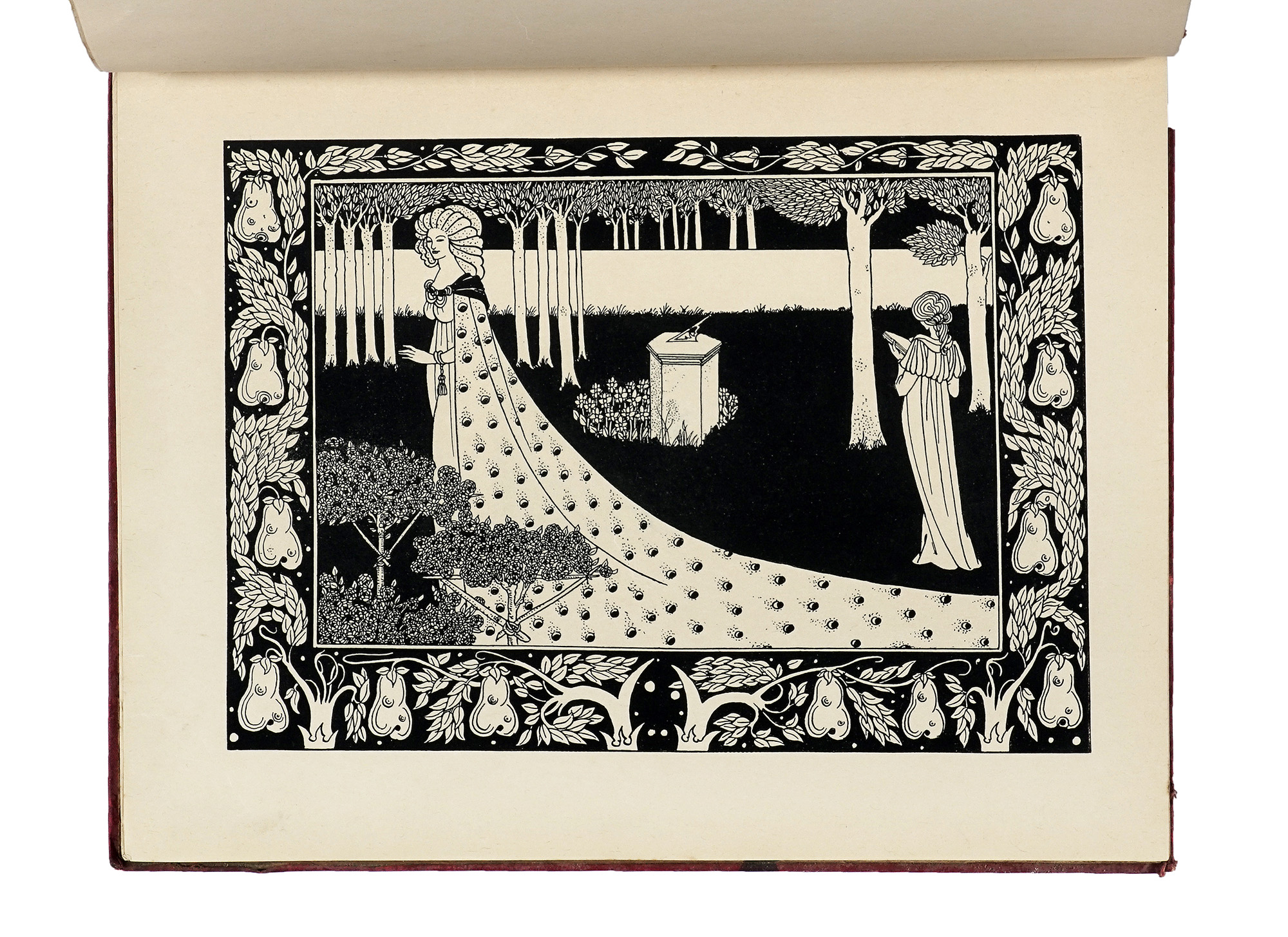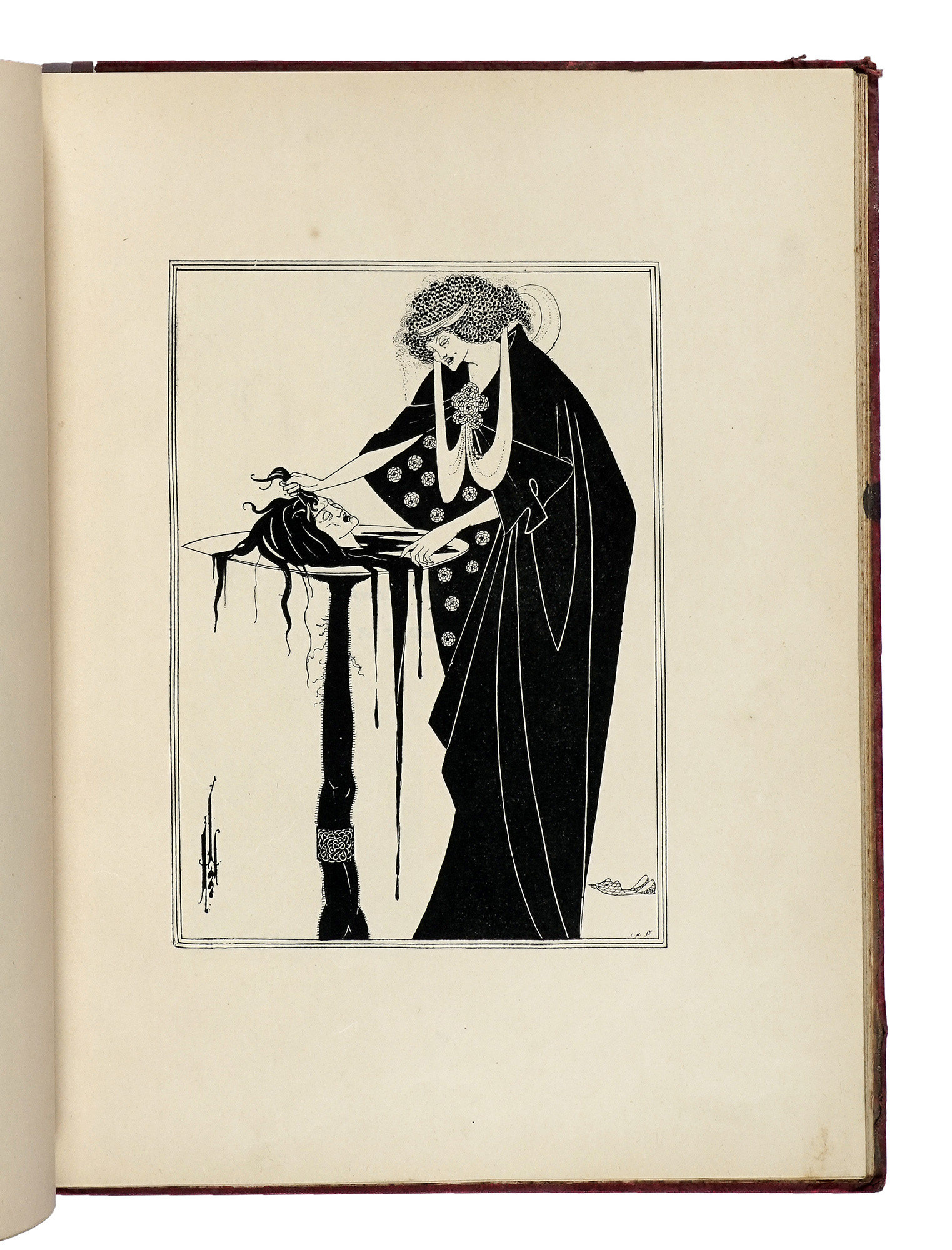 In-4° (mm 285x220). Con 1 ritratto dell'Autore in antiporta fuori testo, protetto da velina, e 50 tavole in bianco e nero di Aubrey Beardsley nel testo, ciascuna preceduta da foglio didascalico. Ampie fioriture alle prime carte di testo, alla velina del ritratto e alla tavola The achieving of the Sangreal, allentata, per il resto buona copia. Legatura editoriale in piena tela, con titoli e illustrazione dell'Autore in oro entro cornice di filetti al piatto anteriore e titoli dorati al dorso; taglio superiore in oro. Ampie gore e macchie ai piatti; fioriture alle sguardie. Annotazione manoscritta al foglio di guardia anteriore e bell'ex-libris al contropiatto. Copia non passibile di restituzione. (1) Prima edizione, della tiratura normale, di questa bellissima raccolta di disegni, alcuni dei quali inediti, del più grande disegnatore del liberty in Europa.