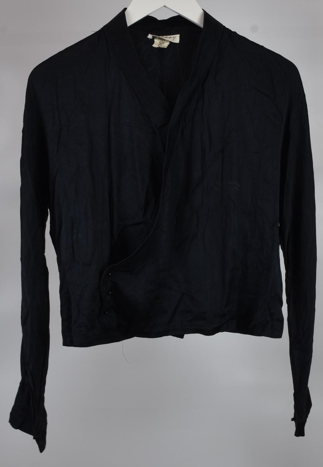 Blusa nera in seta con abbottonatura laterale. Taglia 42 IT. Prodotto in Italia. Ben conservata.