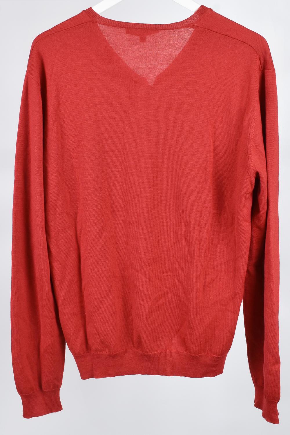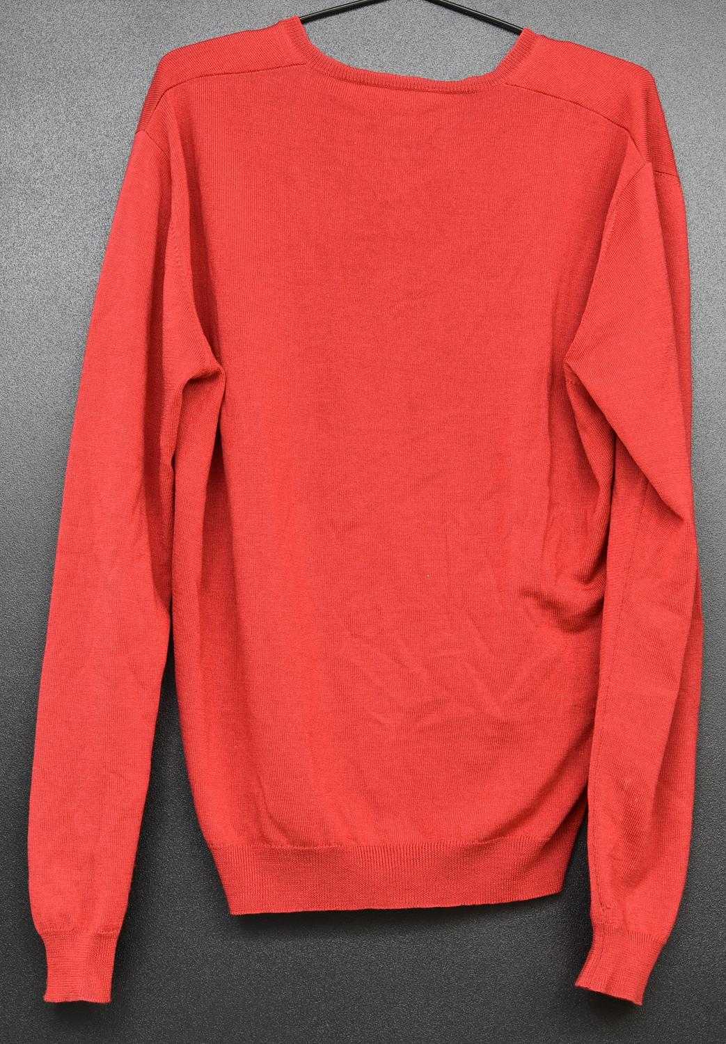 Maglioncino da uomo con scollo a V. Manca etichetta di composizione, probabilmente in cotone. Taglia 52. Difetti. Discretamente conservato.
