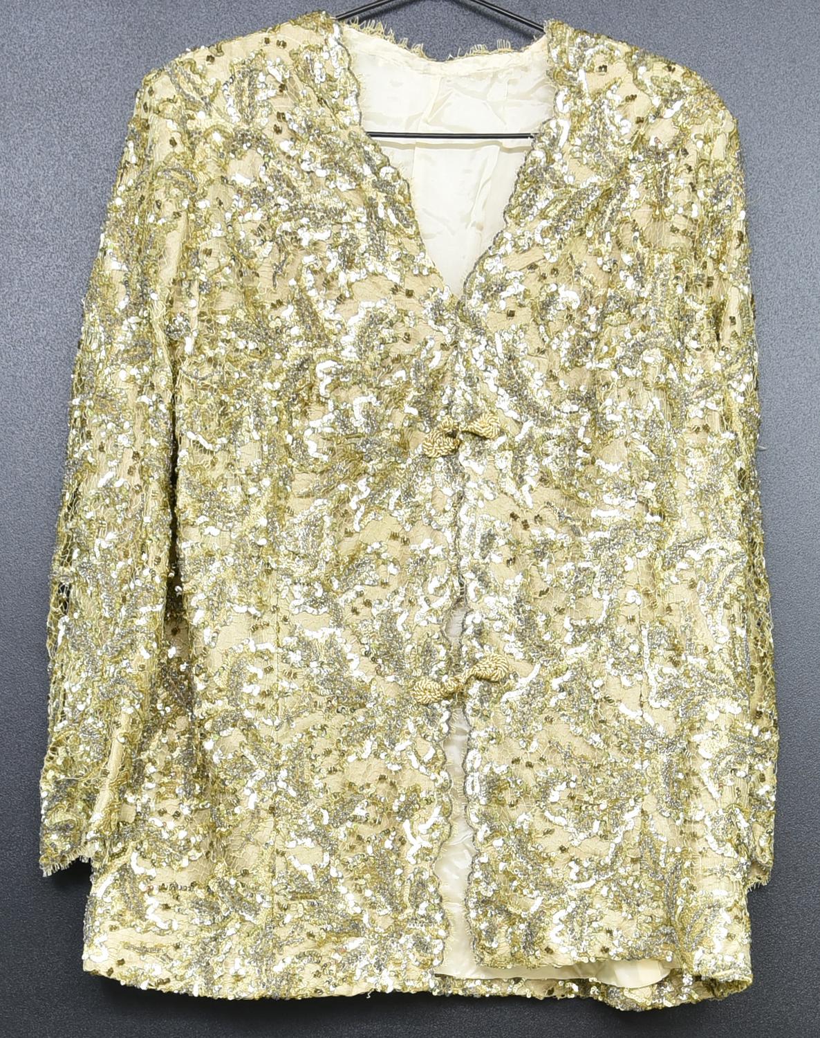 GOLD SEQUINS JACKET DESCRIPTION: Tailor-made sequin jacket. Size and...