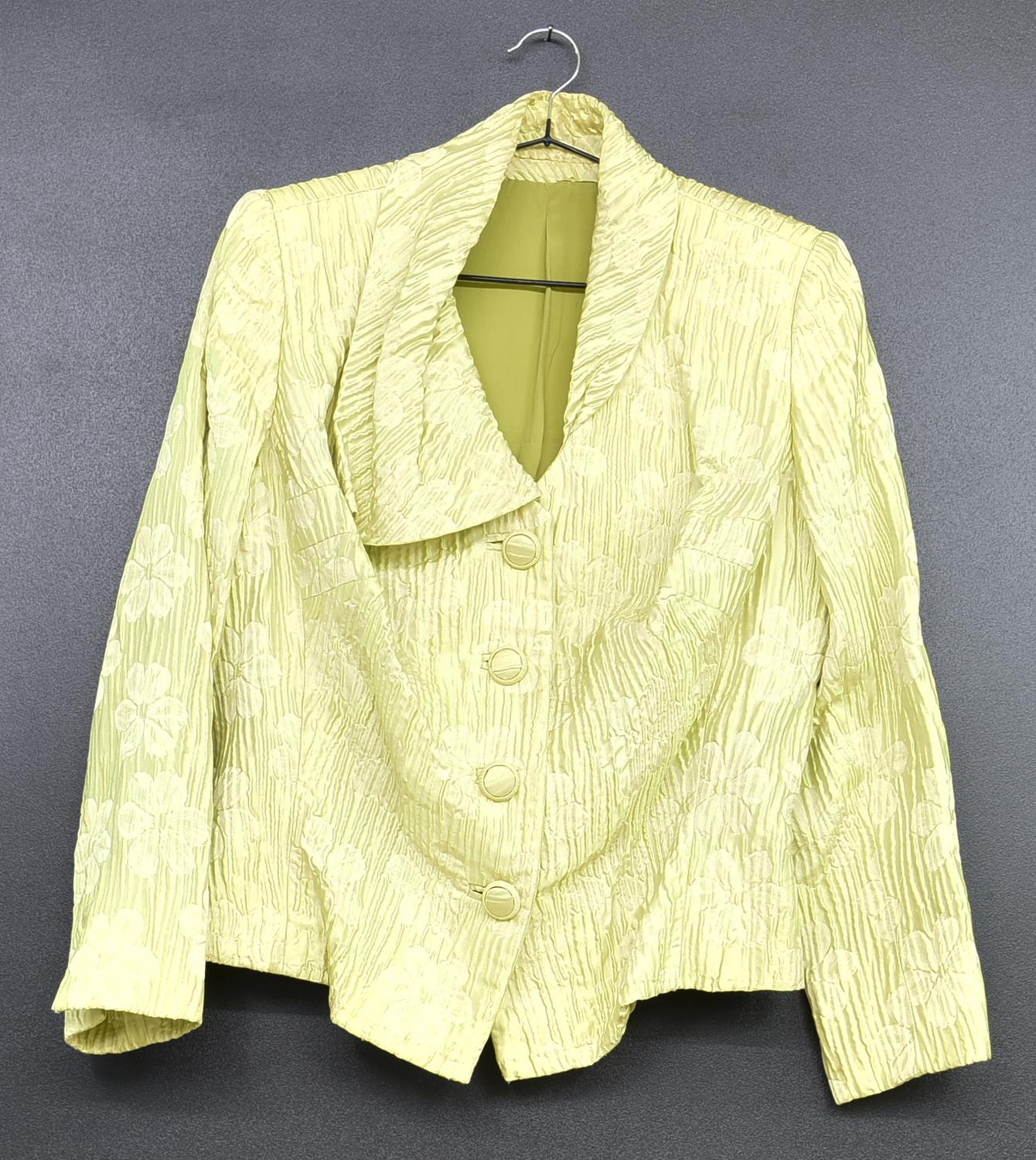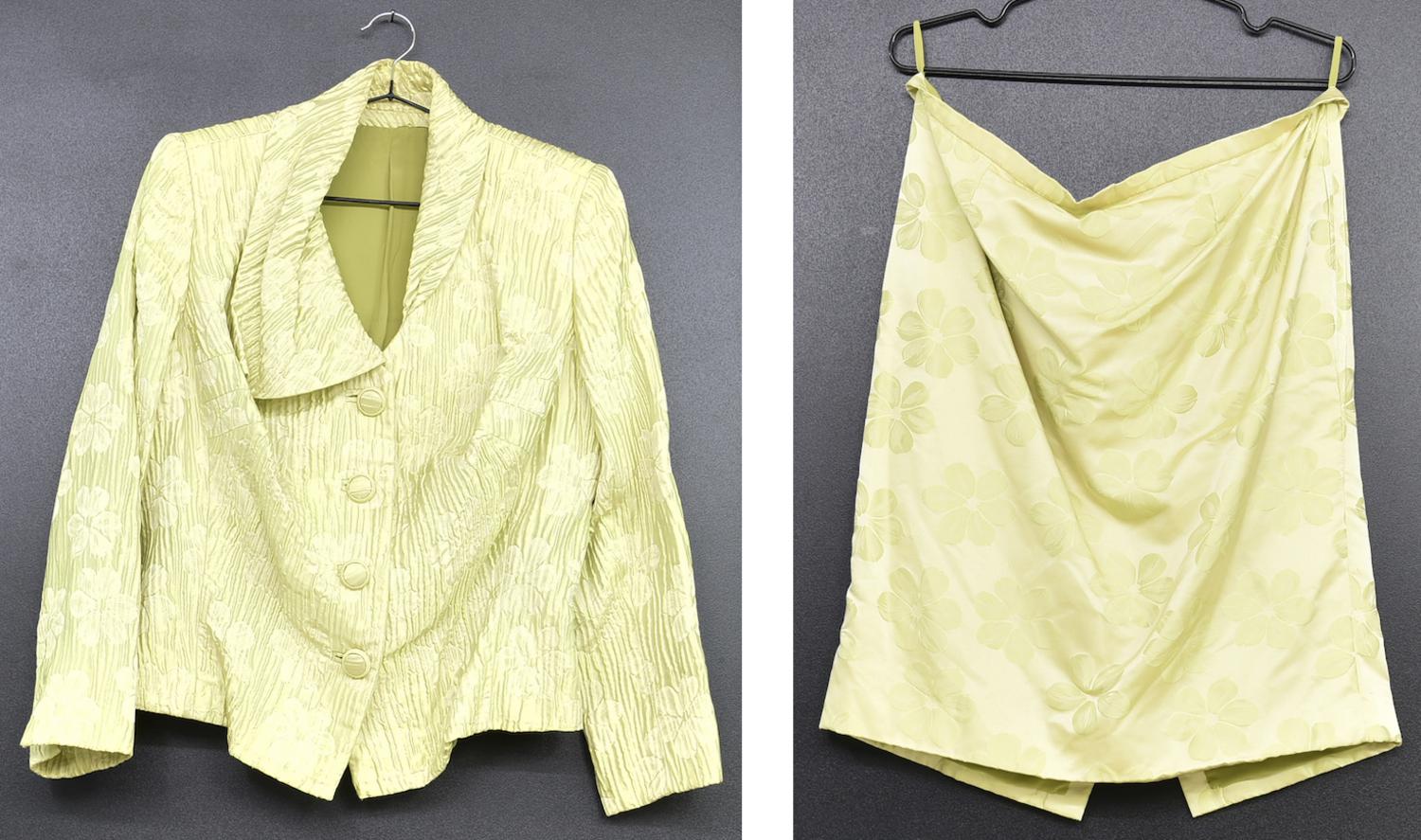 YELLOW SILK SUIT DESCRIPTION: Tailor-made silk suit. Size and composition...