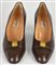 Decollete’ vintage in pelle marrone con dettaglio metallico con logo della Maison. Tacco di 6,5 cm. Taglia 38.5. Presentate con scatola originale. Prodotte in Italia. Eccellente, mai indossate, pari al nuovo.