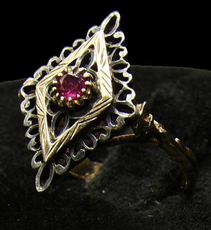 anello realizzato a losanga con al centro un rubino di forma rotonda