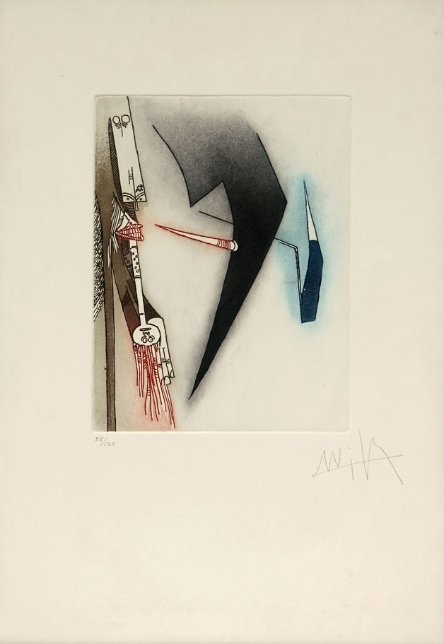 Wifredo LAM Sagua la Grande 1902 - Parigi 1982 Totem acquaforte e acquatinta a colori coloured etching and aquatint cm. 62x44 Bibliografia | Bibliography ‘Salvador Dalì e i Surrealisti’, catalogo della mostra Exma, Cagliari, 2004, Mazzotta, p. 111 ‘Salvador Dalì e i Surrealisti’, catalogo della mostra a Civitanova Marche, 2005, Mazzotta, p. 121 Provenienza | Provenance Giuseppe Terragno, Lecce Edizione di 130 esemplari Numerazione ‘55/130’ (in basso a sinistra); firma ‘Wifredo Lam’ (in basso a destra)