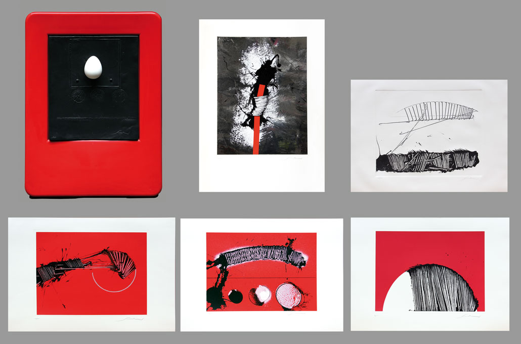Emilio SCANAVINO Genova 1922 - Milano 1986 Immagini catturate, 1970 libro d’artista con 5 incisioni e opera in copertina artist’s book with 5 etchings and a work on the cover cm. 74x55 Libro d’artista composto da 6 poesie di Cesare Vivaldi e 5 incisioni di Emilio Scanavino, La Pergola edizioni d’arte, Pesaro Milano Edizione di 90 esemplari + 10 ad personam + XX Tutte le incisioni, così come il multiplo sul fronte dell’astuccio editoriale, sono firmate ‘Scanavino’ (in basso a destra) e numerate (in basso a sinistra) Artist’s book composed of 6 poems by Cesare Vivaldi and 5 etchings by Emilio Scanavino, La Pergola edizioni d’arte, Pesaro Milan Edition of 90 + 10 ad personam + XX All etchings, as well as multiple work on the front of the box, are signed ‘Scanavino’ (lower right) and numbered (lower left)