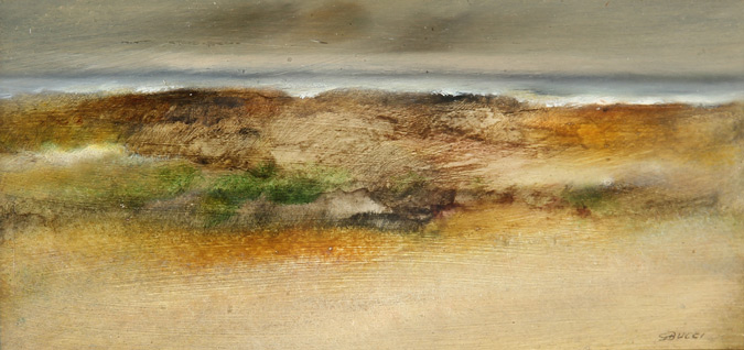 Guido BUCCI Marina, 1989 olio su tavola oil on board cm. 14x30 Autentica dell’artista su fotografia Certificate issued by the artist Firma ‘G. Bucci’ (in basso a destra) Timbro dell’artista; timbro della galleria Alexandra, Rovigo (al retro) Signed ‘G. Bucci’ (lower right) Stamp of the artist; stamp of the gallery Alexandra, Rovigo (on the reverse)