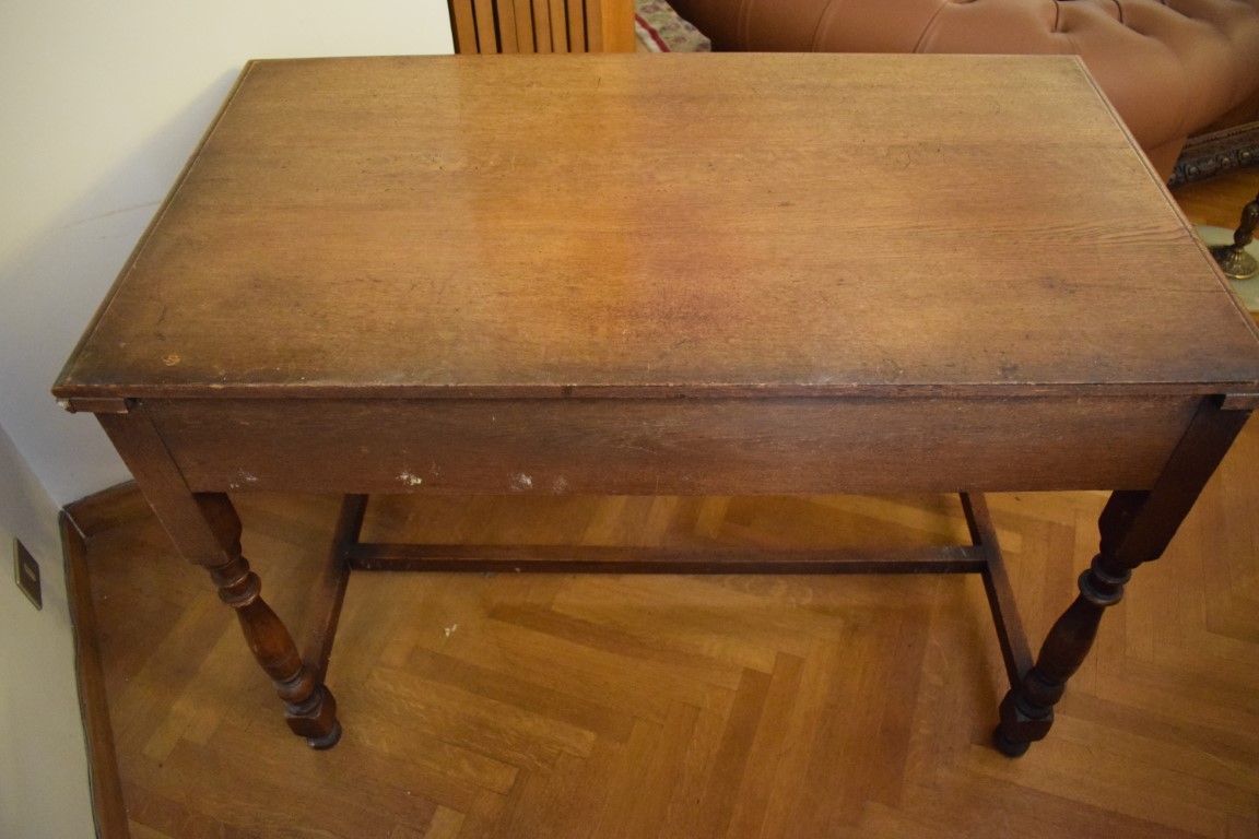 Scrivania in noce Fine del XIX secolo piano con profilo a becco di civetta,...