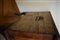 Comodino in piuma e radica di noce fronte e piano sagomati, base non coeva cm...
