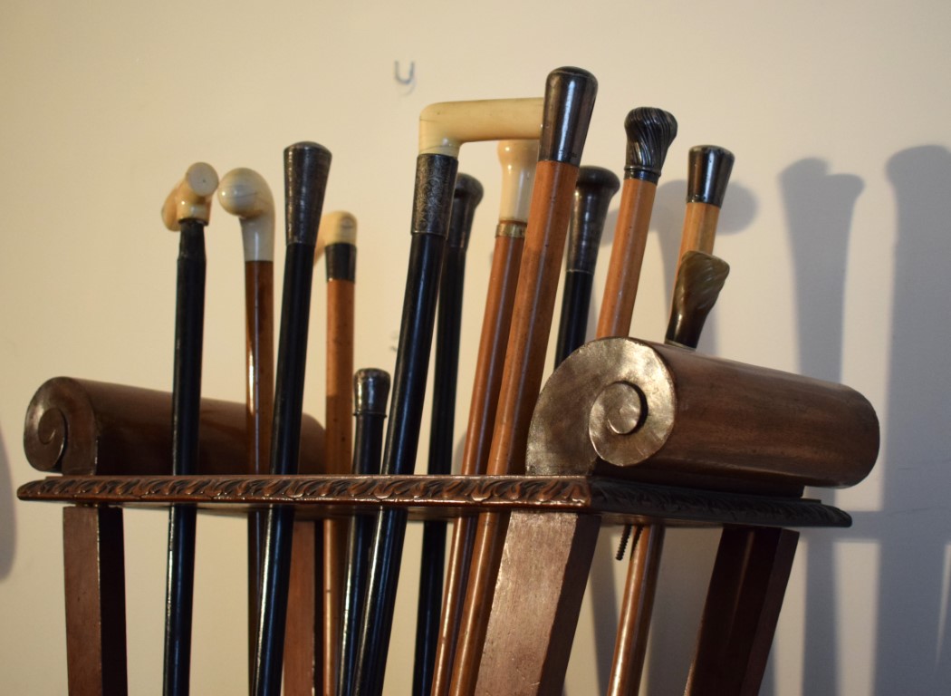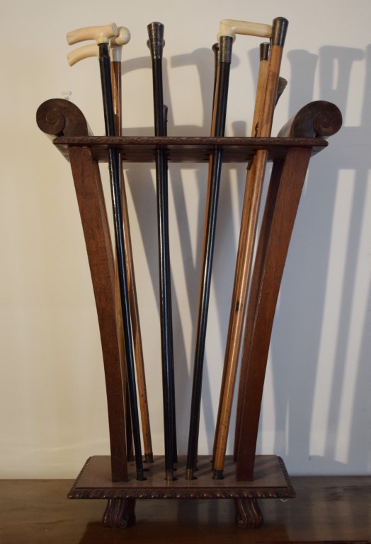 Collezione di 11 bastoni su struttura lignea cm 81x58 Il lotto si trova a...