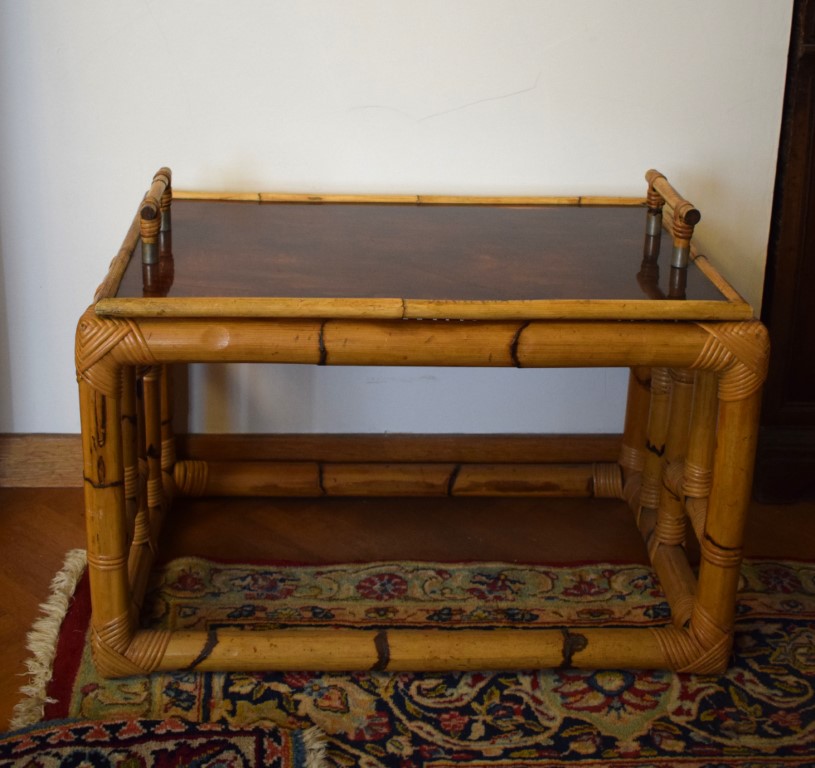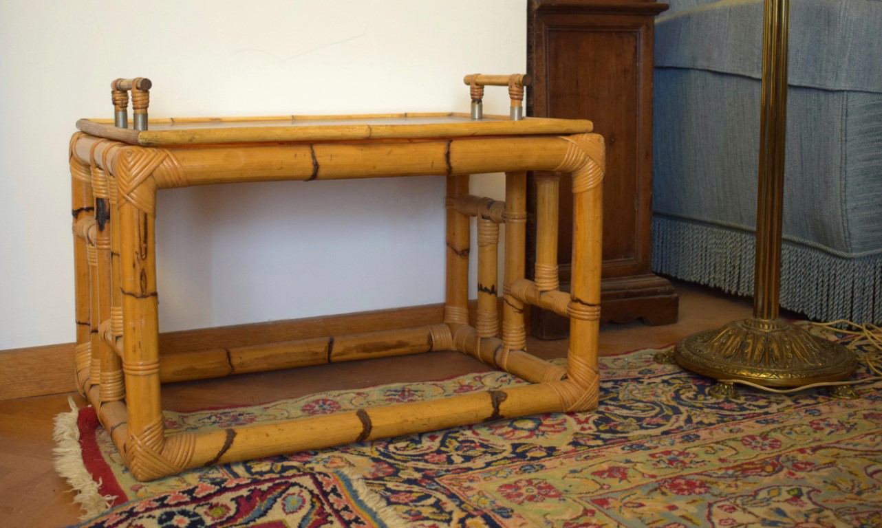 Tavolino vassoio in bambù e vetro cm 67x43x51 Il lotto si trova a Firenze. Il...