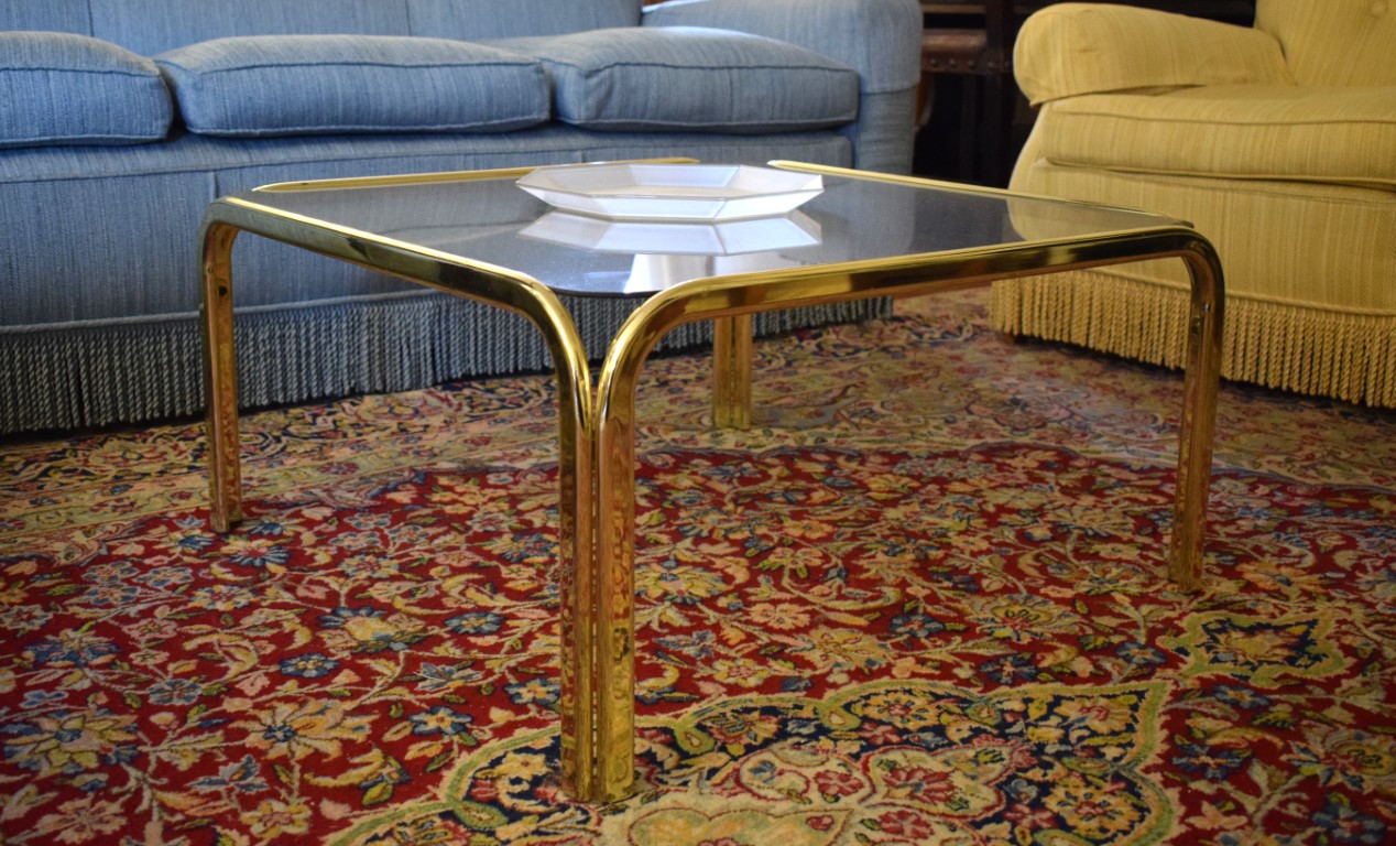Lotto 75 | Tavolino da fumo di design in metallo cromato e vetro fumè cm 75x75x35 Il...