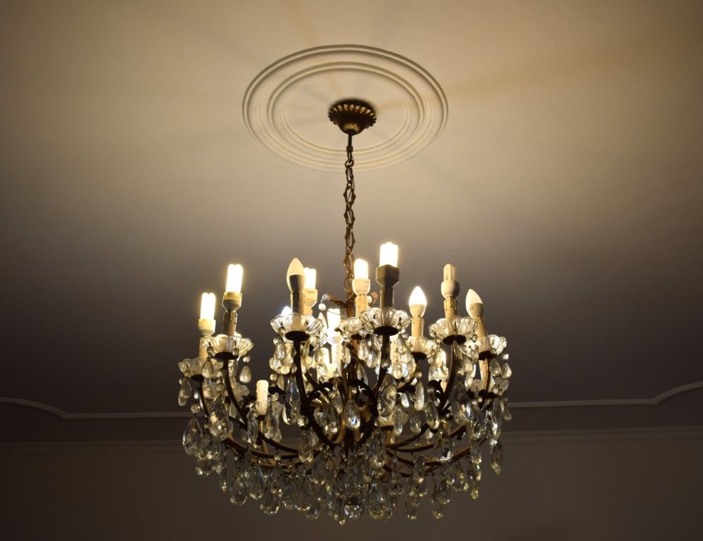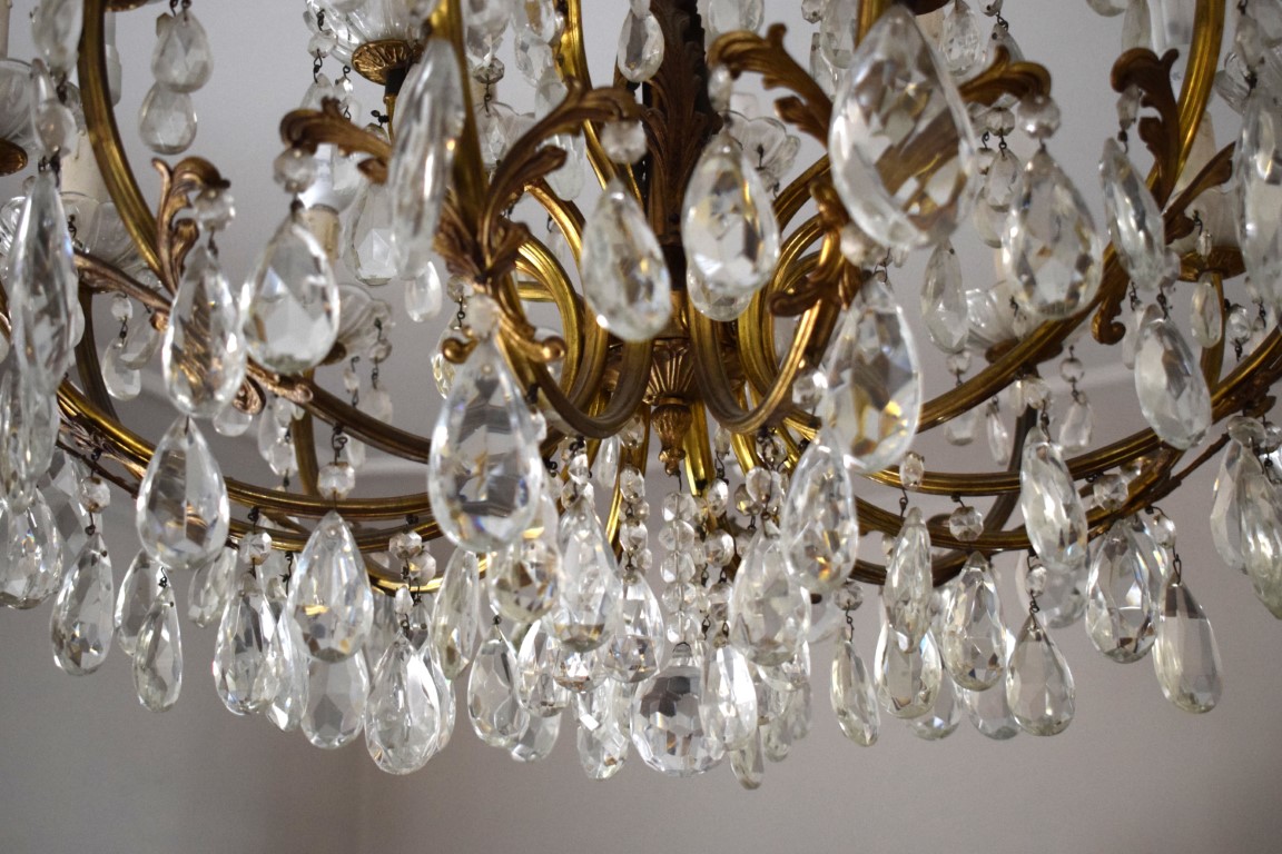 Lotto 94 | Grande lampadario in bronzo pendenti in cristallo sfaccettato a dodici luci H...
