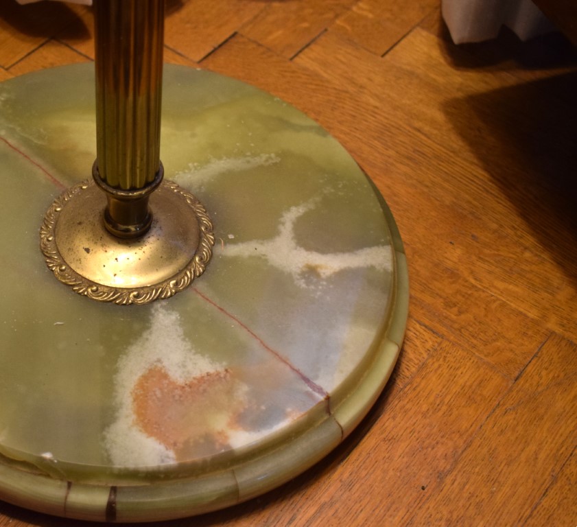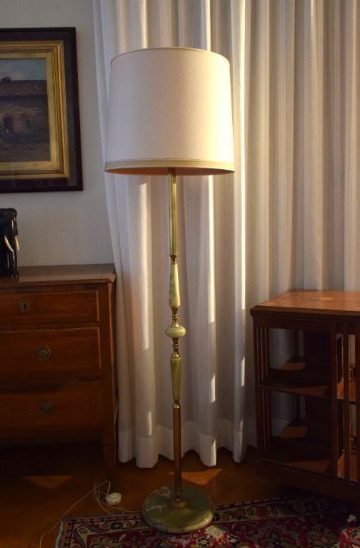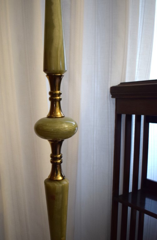 Piantana in metallo e onice verde fusto a scanalature, corredata di paralume...