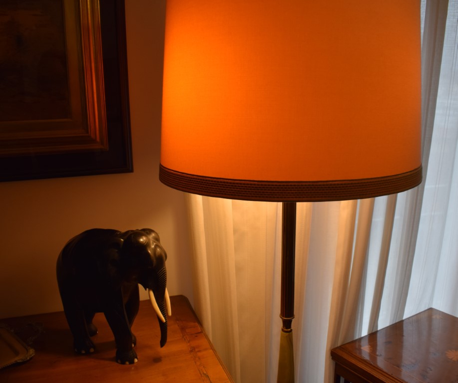 fusto a scanalature, corredata di paralume color avorio