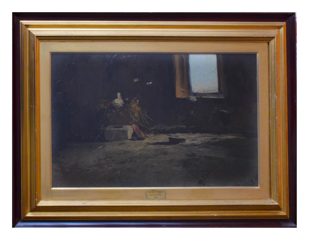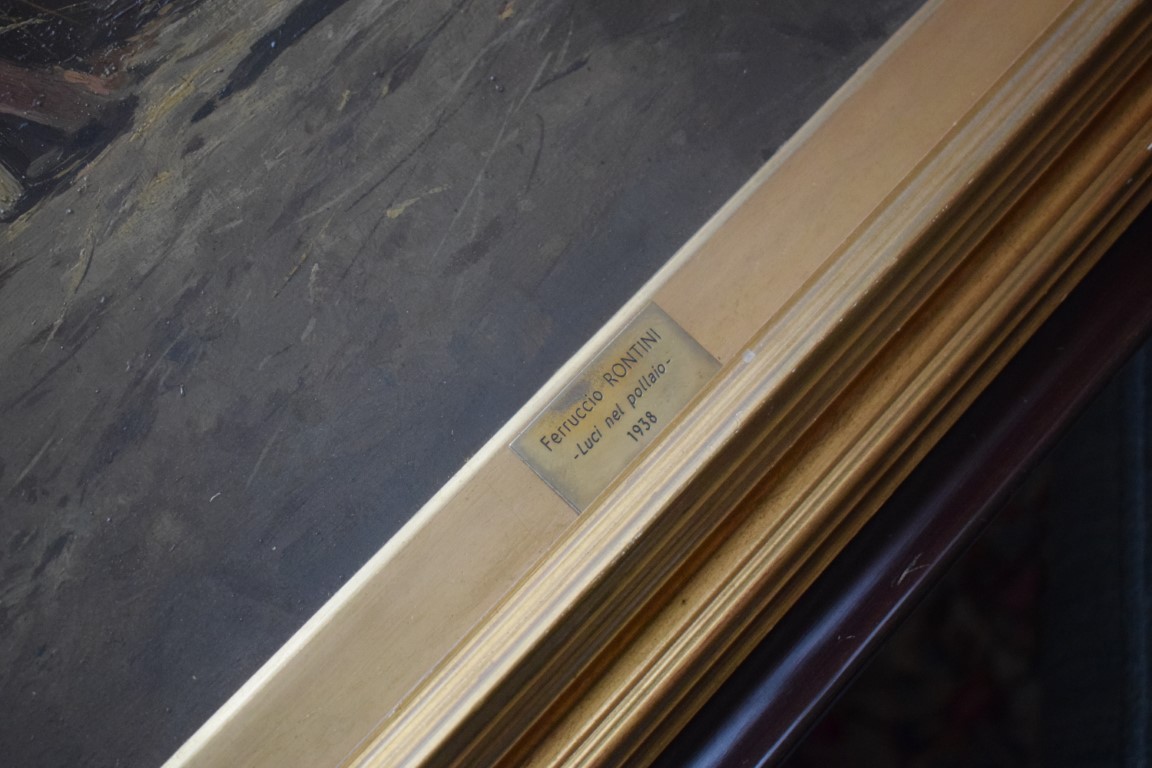 Ferruccio Rontini (Firenze, 1893 - Livorno, 1964), Luci nel pollaio olio su...
