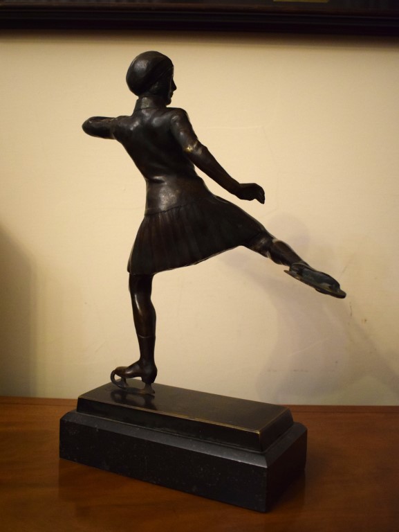 Scultura in bronzo raffigurante pattinatrice sul ghiaccio