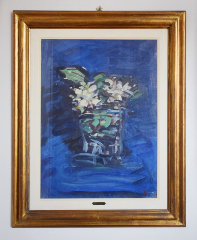 Enzo Pregno (Alessandria d'Egitto, 1898 - Firenze, 1972), Fiori su sfondo blu