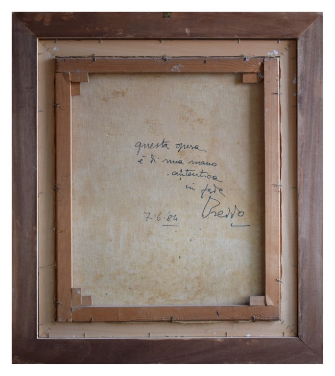 Firmato in basso al centro e autentica dell'artista al verso.