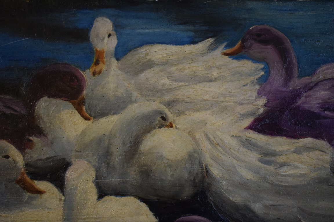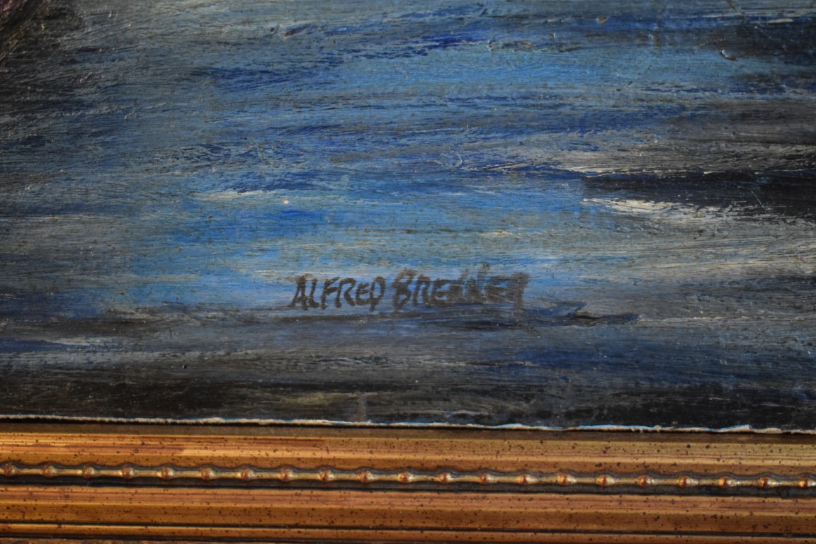 Pittore del XX secolo, firmato Alfred Brenner, Cigni olio su tela cm 51x76,...