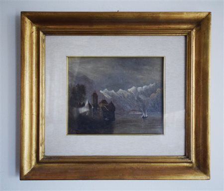 Pittore inglese del XX secolo, Paesaggio probabilmente olio su cartoncino...