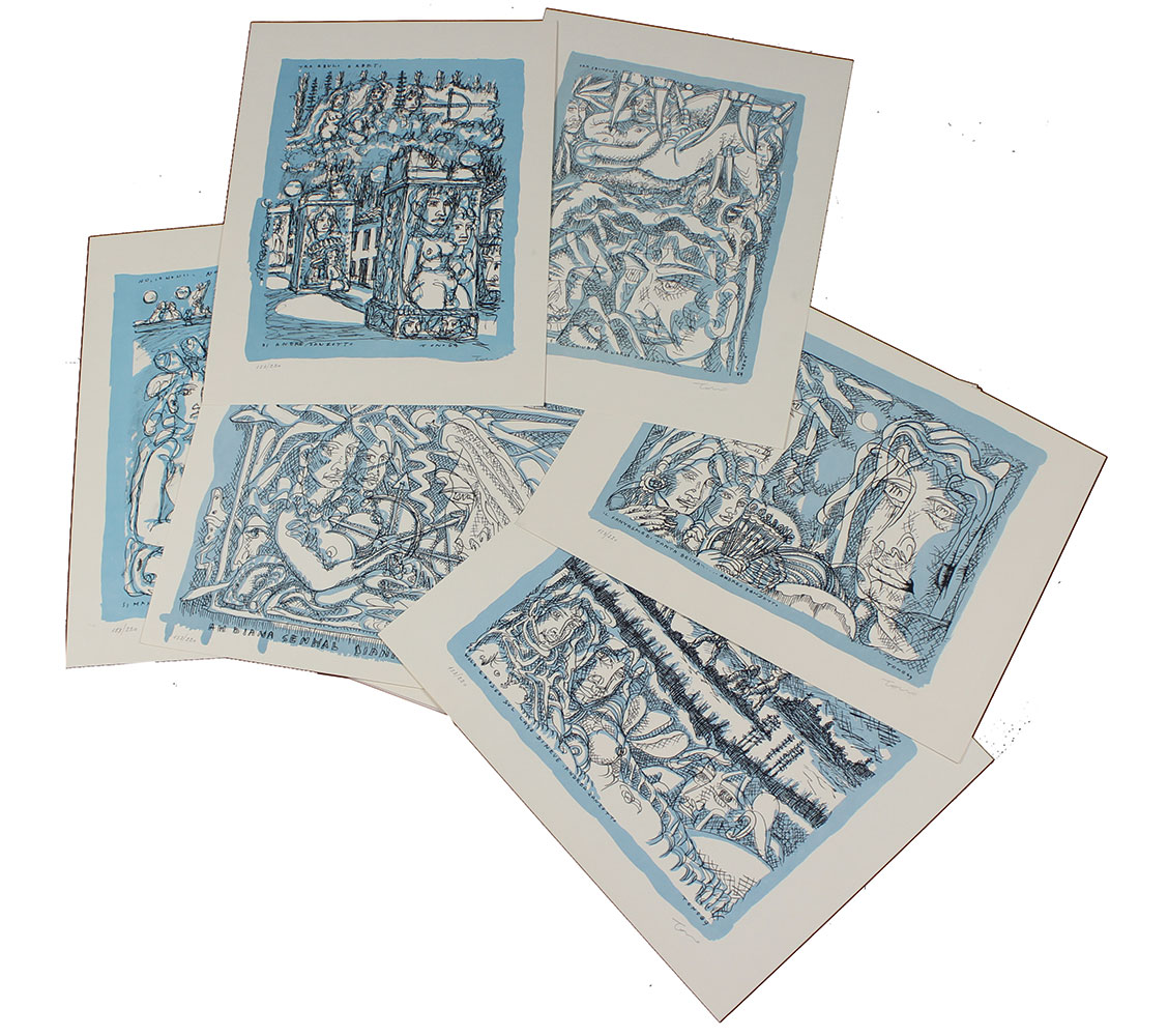 Zancanaro Tono Gli sguardi i fatti e Senhal, 1969 cartella di 9 litografie a 2 colori, cm. 28x38 (4), cm. 38x28 (4), cm. 38x55,5 (1), es. 153/220 firmate in basso a destra