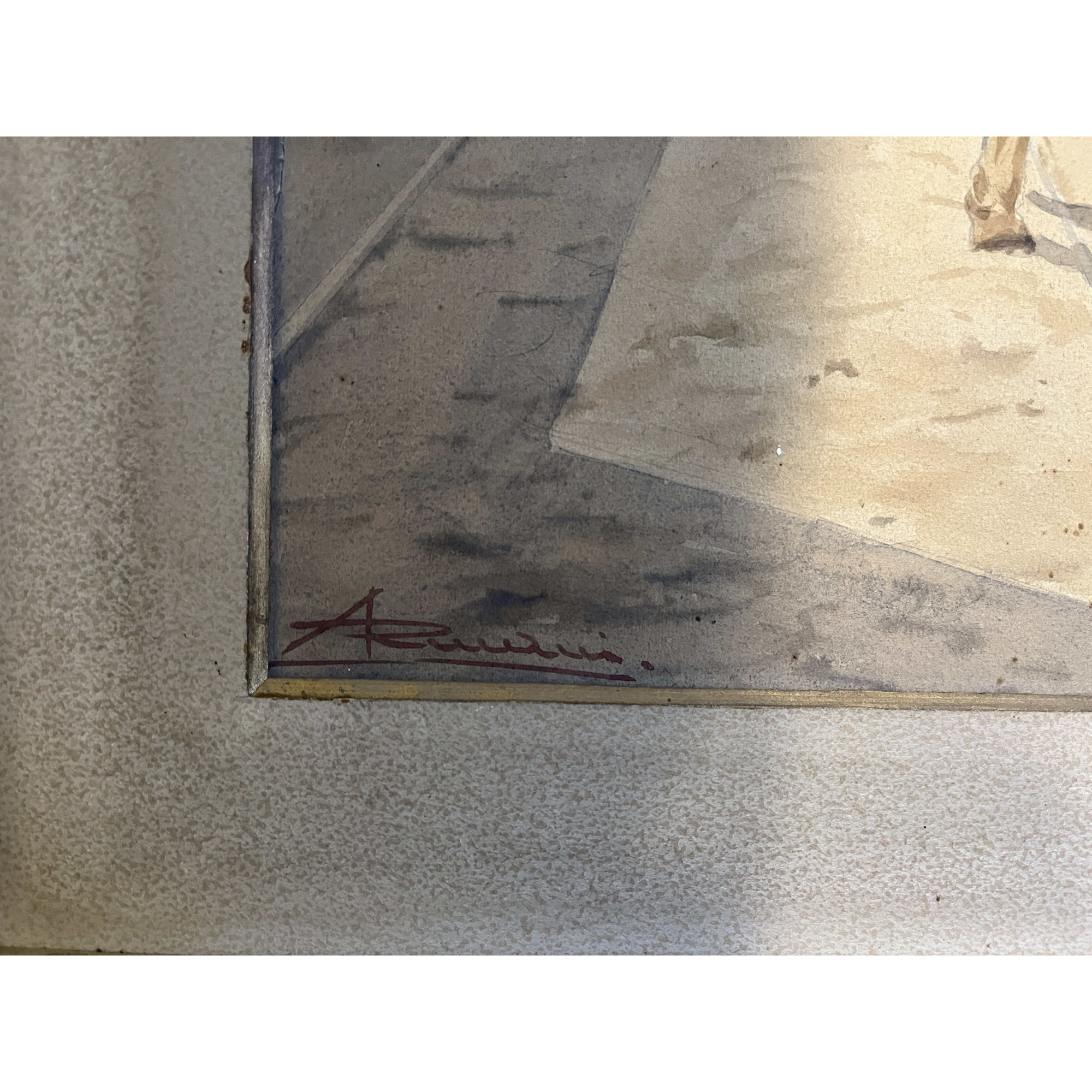 Ernesto Giuliano Armani, Scena con cavalli, acquerello su cartone, cm 38x48. Con cornice cm 58x68. Firmato in basso a sx.
