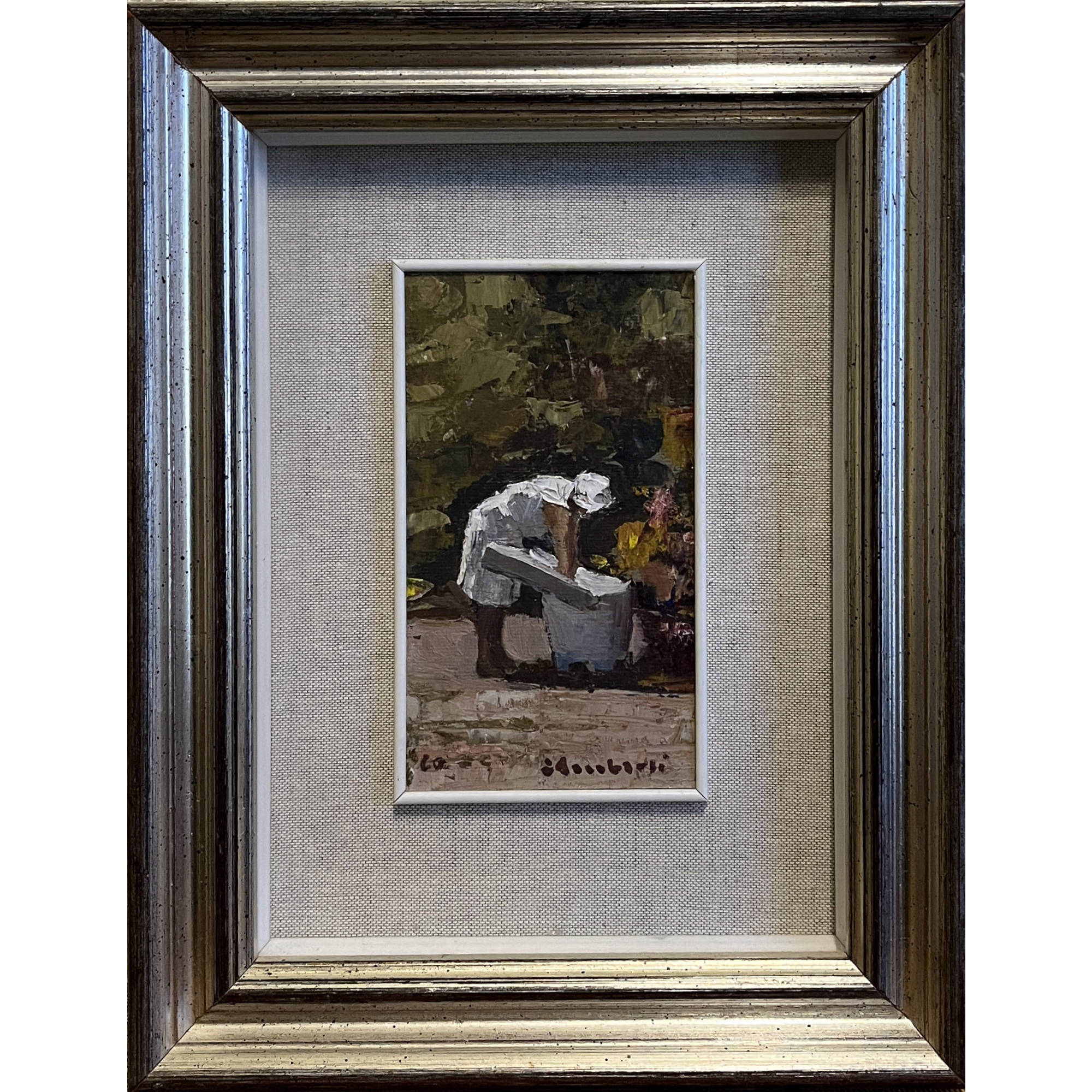 Elmo Ambrosi (1960), Lavandaia, olio su masonite, cm 14x8.