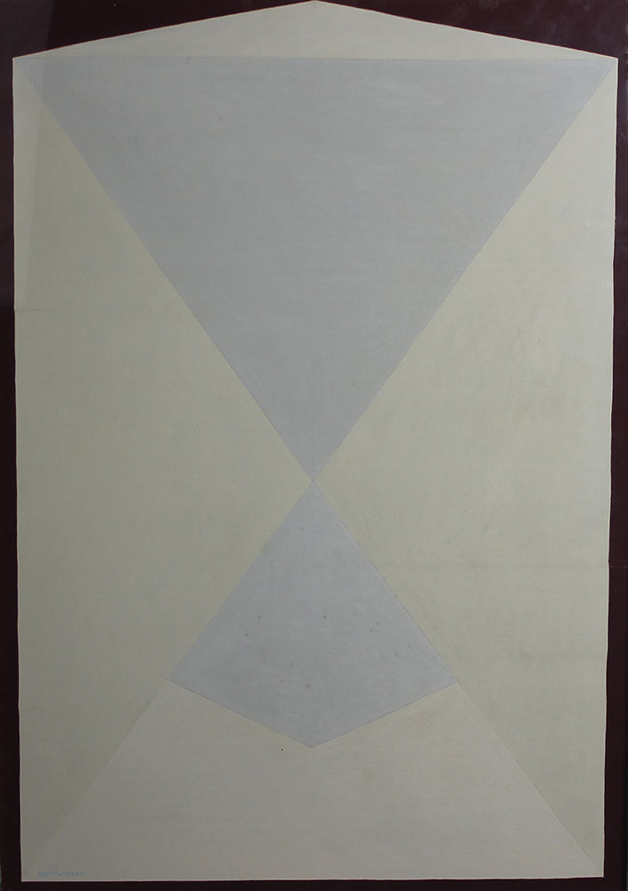 Mazzon Galliano Lieve apparizione, 1967 tecnica mista su tela, cm. 92x65 firmata e datata in basso a sinistra, firmata e datata in alto al retro. Al retro: etichetta autografa con correzione del titolo dell'opera, etichetta Civica Galleria d'Arte Moderna di Gallarate relativa alla Mostra Antologica dal 18/02 al 4/03/1979, etichetta Expo Arte Bari 1980, timbro della Galleria d'Arte Spriano, etichetta della Galleria Pantha Arte di Como, etichetta Galleria Schettini, opera pubblicata sulla copertina del volumetto "Arte Moderna Italiana" n. 76 a cura di Vanni Scheiwiller