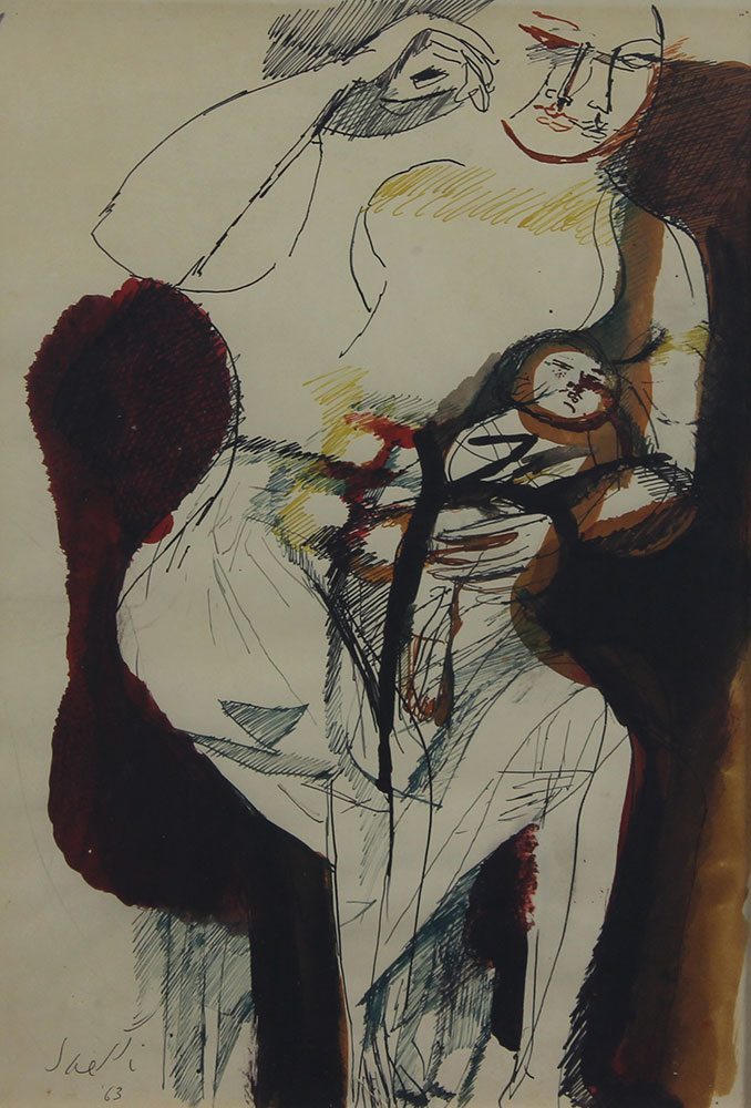 Saetti Bruno Senza titolo, 1963 tecnica mista su carta, cm. 51x35 firmata e datata in basso a sinistra, certificato su fotografia della galleria Il Castello di Adria