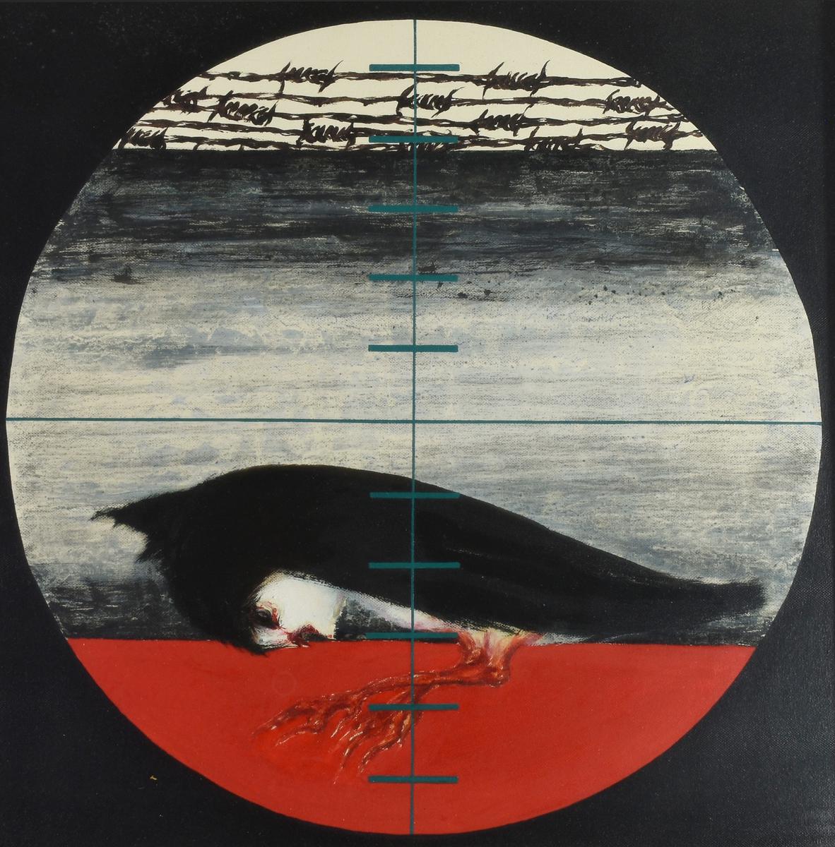 Gino Baglivo IL BERSAGLIO olio e acrilico su tela, cm 50x50 sul retro: firma...