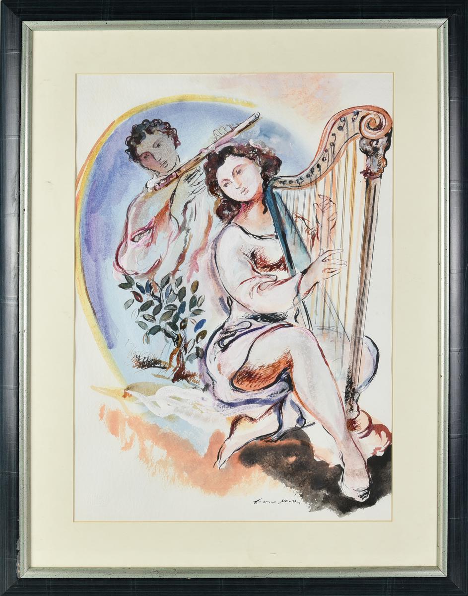 Lotto 80 | Franco Murer LA MUSICA, 2003 tecnica mista su carta, cm 50x35 firma L'opera...