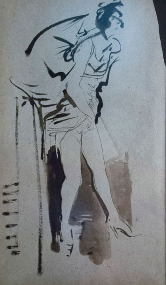 Annigoni Pietro Figura china su carta pesante, cm. 61x37,5 firmata e siglata al retro, è presente un disegno al retro