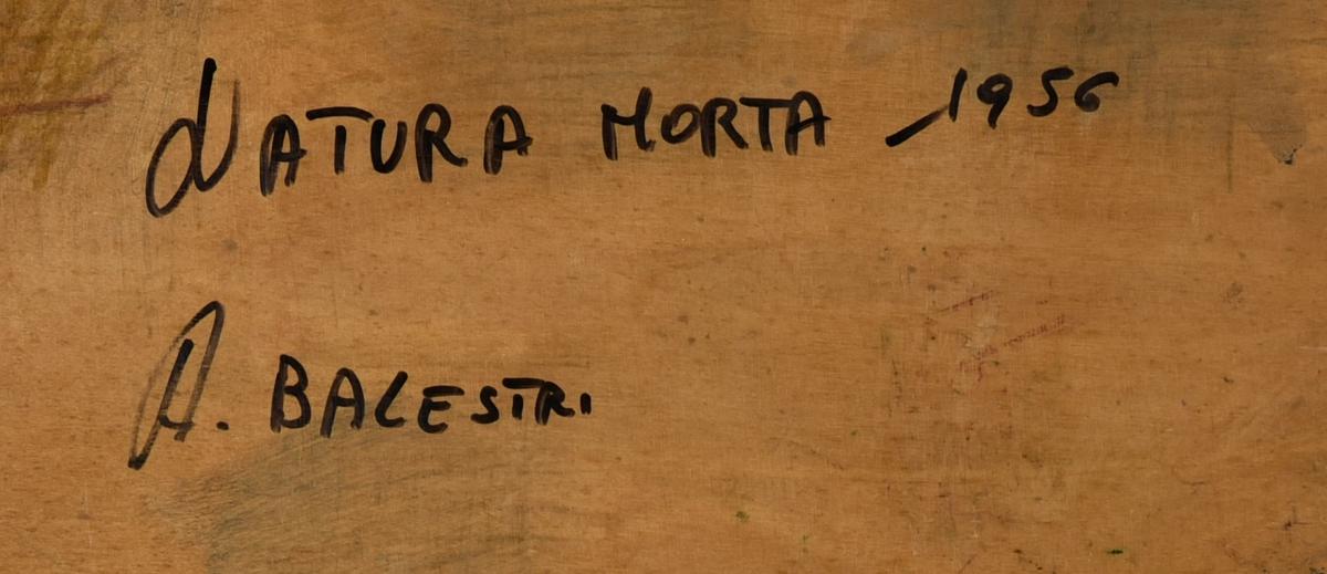 Lotto 110 | A. Balestri NATURA MORTA, 1956 olio su tavola, cm 40x50 firma sul retro:...