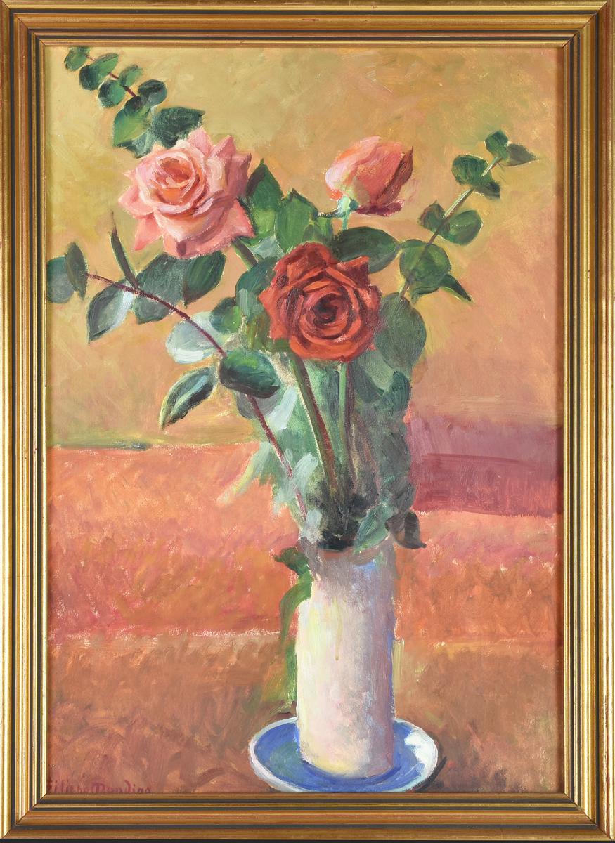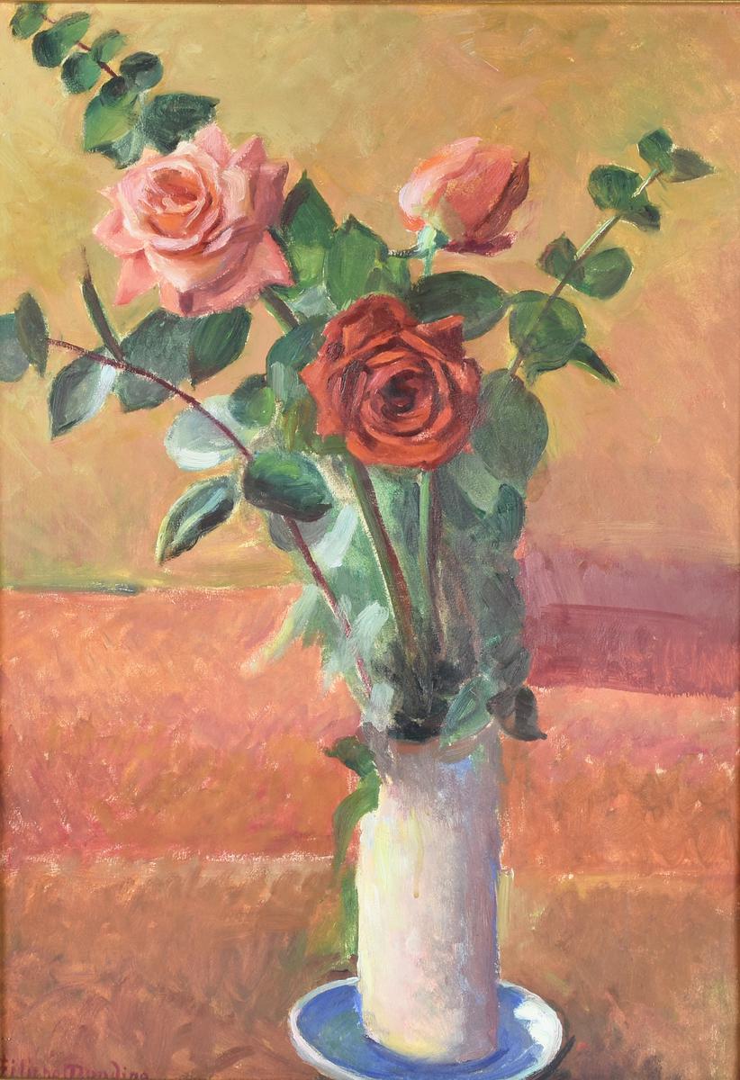 Filippo Mondino VASO DI ROSE olio su carta, cm 49x33 firma