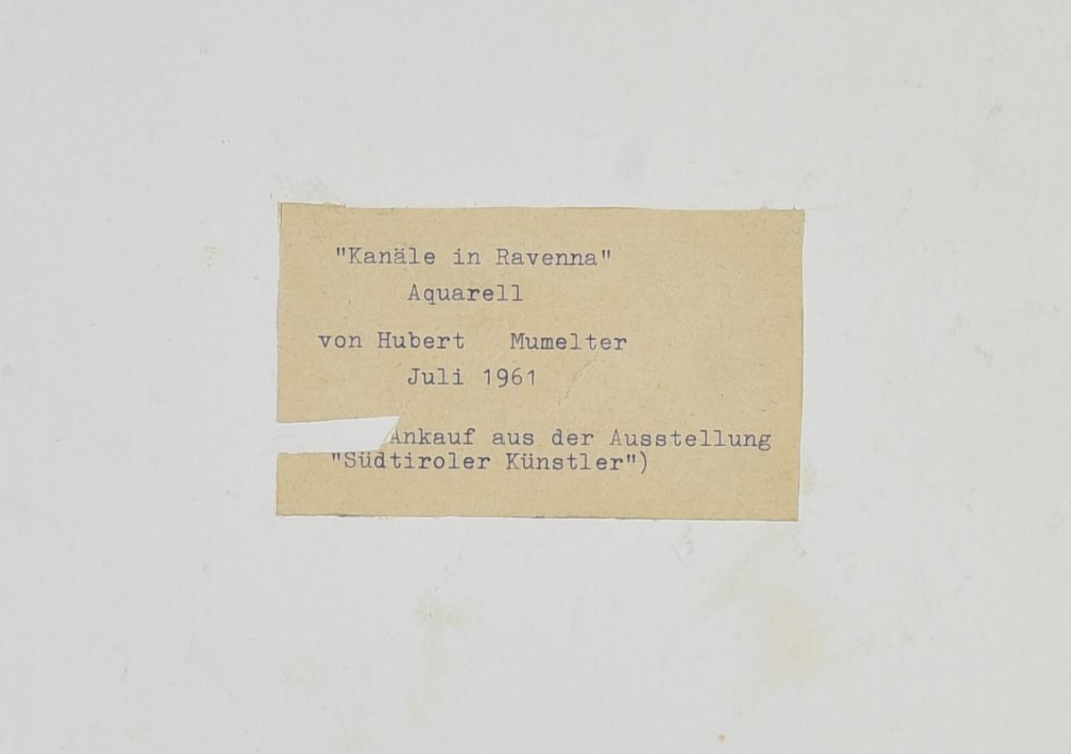 Huber Mumelter KANALE IN RAVENNA, 1961 acquerello su carta, cm 28x39 firma...