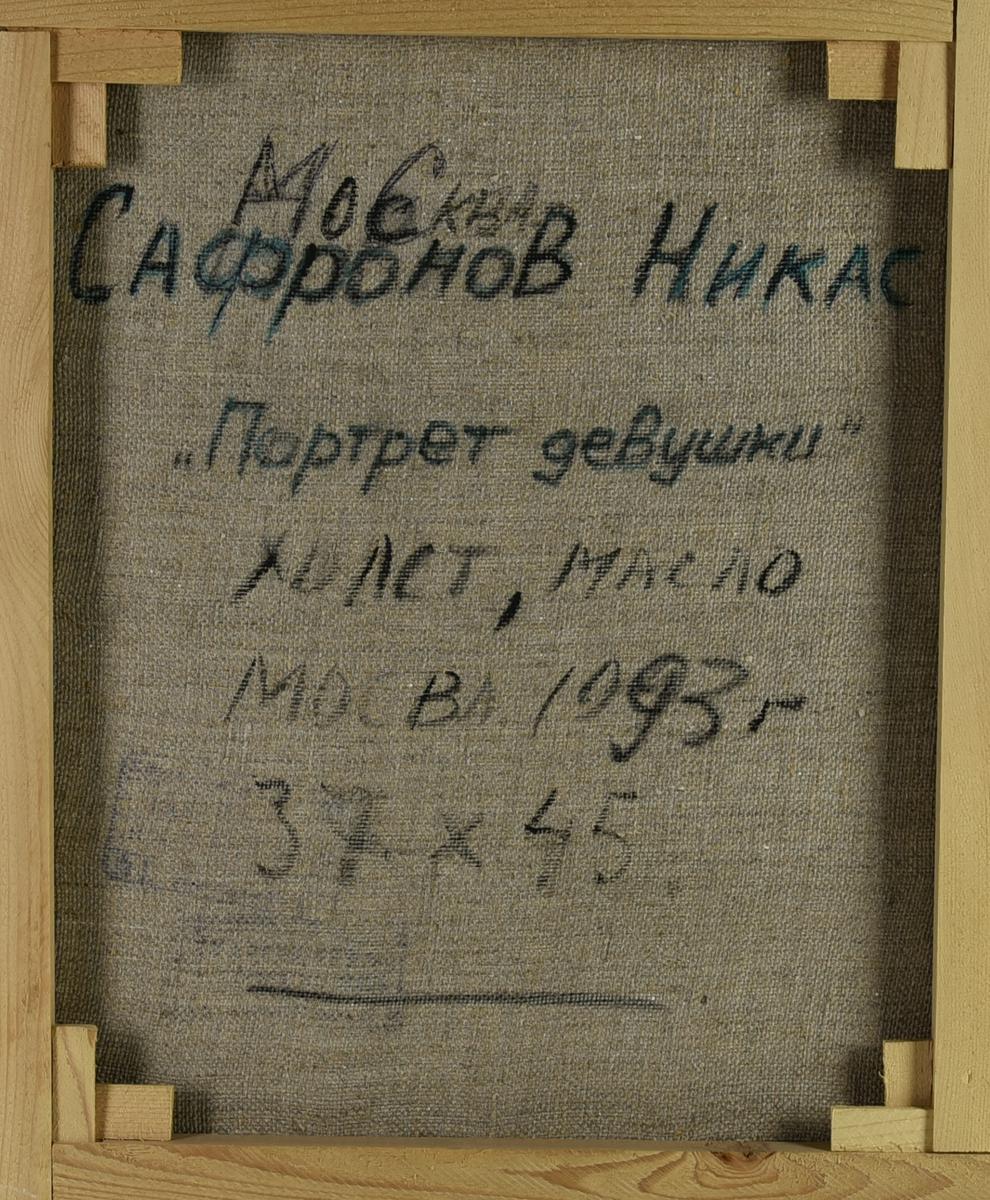 Nikas Safronov RITRATTO DI FANCIULLA, 1993 olio su tela, cm 45x37 firma sul...