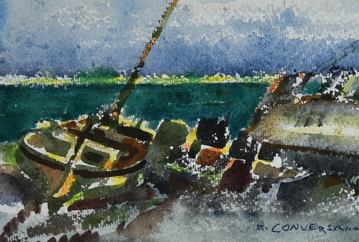 Romano Conversano SENZA TITOLO tempera acquerellata su carta, cm 16,5x23 firma