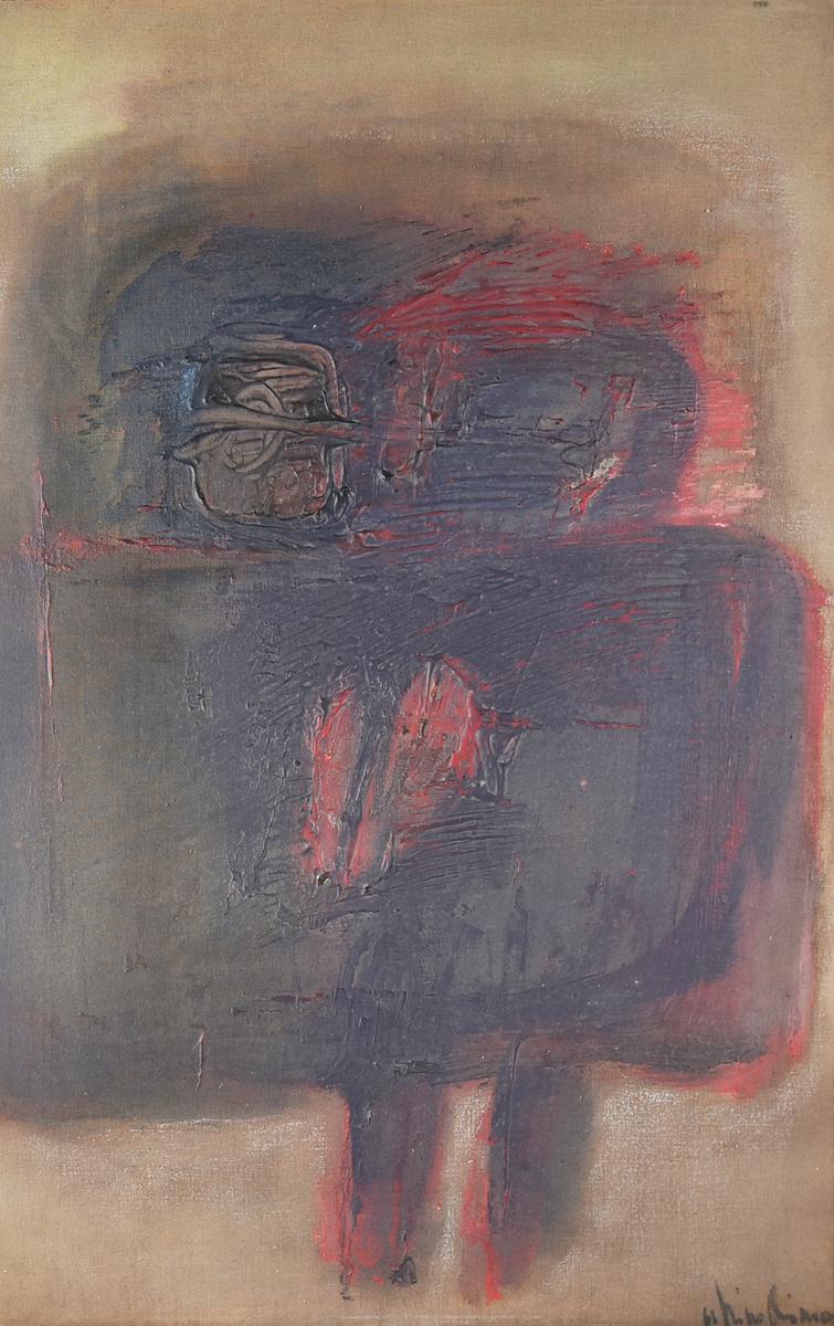 Nino Ajmone COMPOSIZIONE, 1961 olio su tela, cm 60x40 firma e data sul retro:...