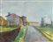 Annibale Follini SCORCIO DI PAESE olio su cartone telato, cm 40x50 firma