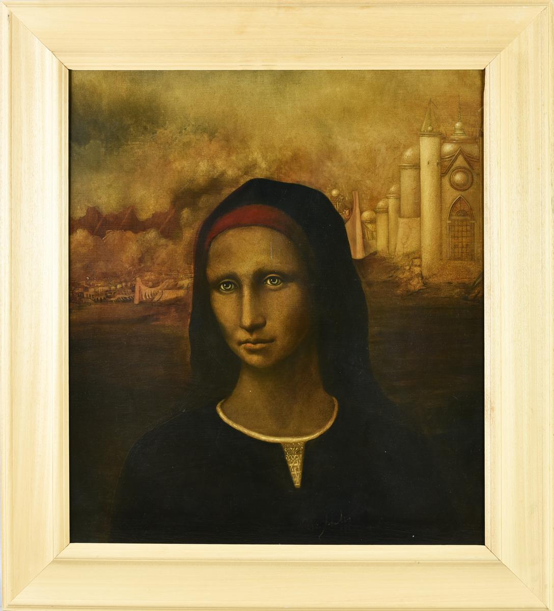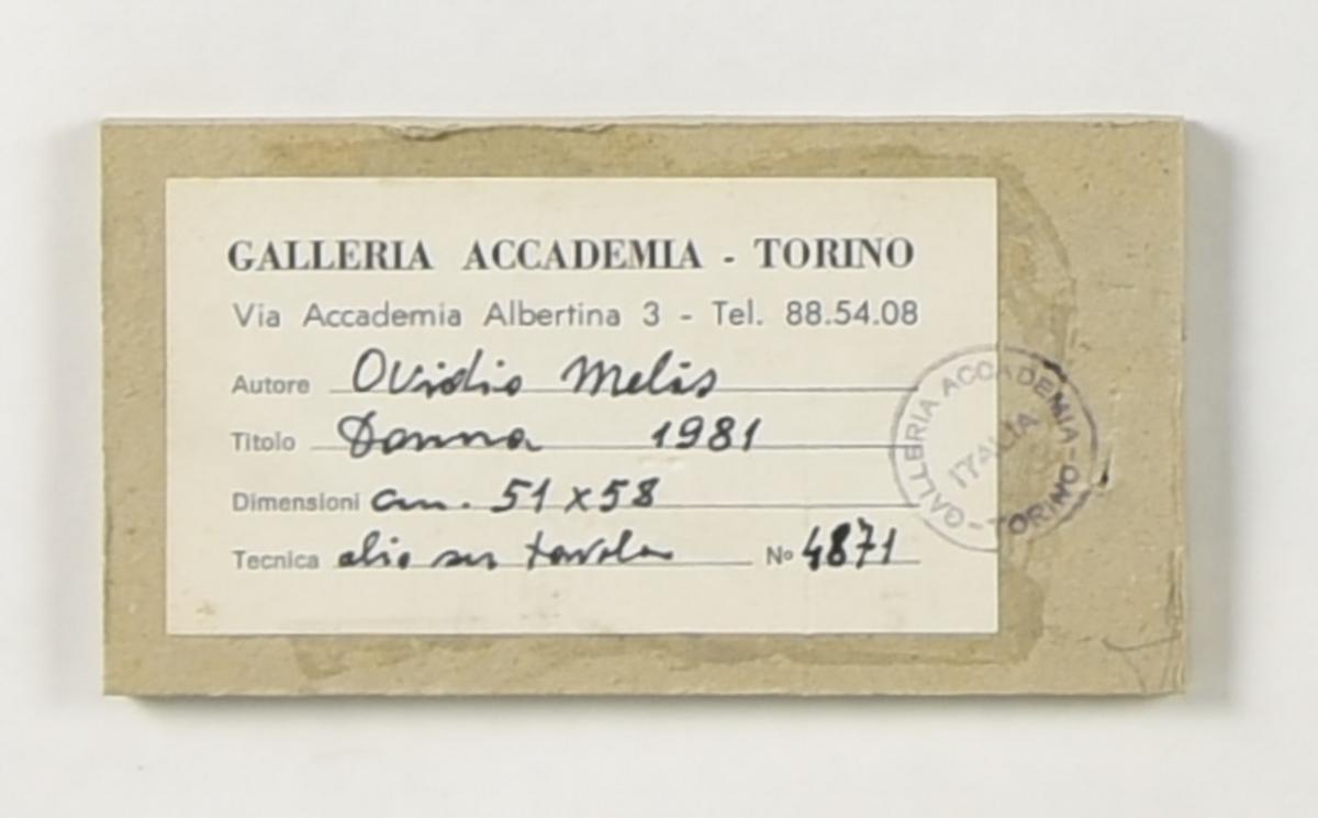 Ovidio Melis DONNA, 1981 olio su tavola, cm 58x51 firma e data sul retro:...
