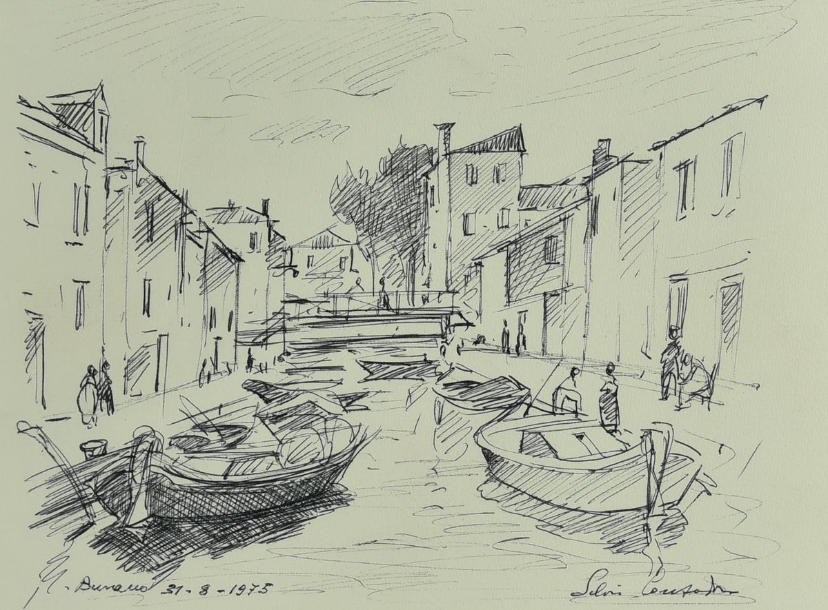 Lotto 298 | Silvio Consadori BURANO, 1975 penna su carta, cm 21,5x29 firma, titolo e data