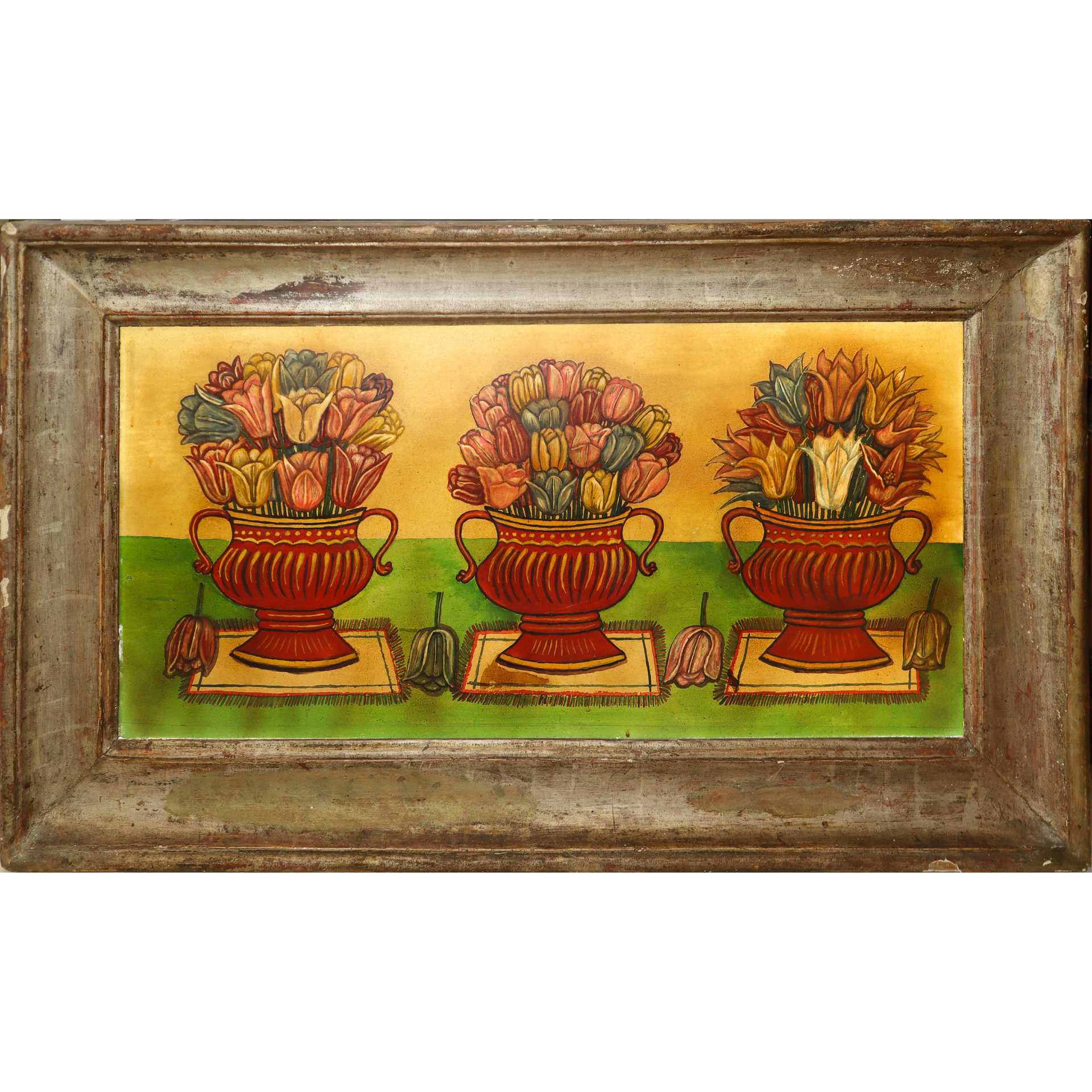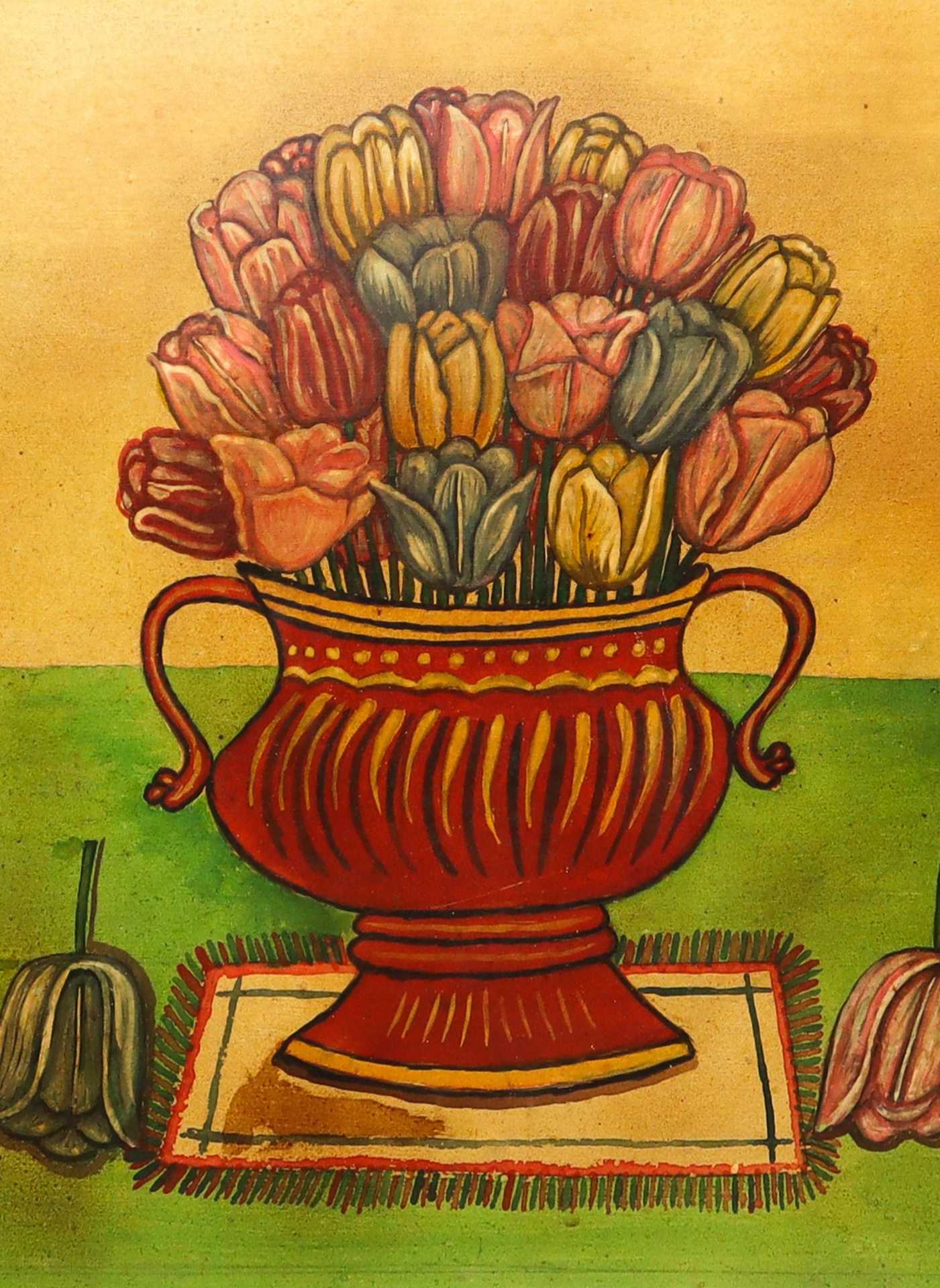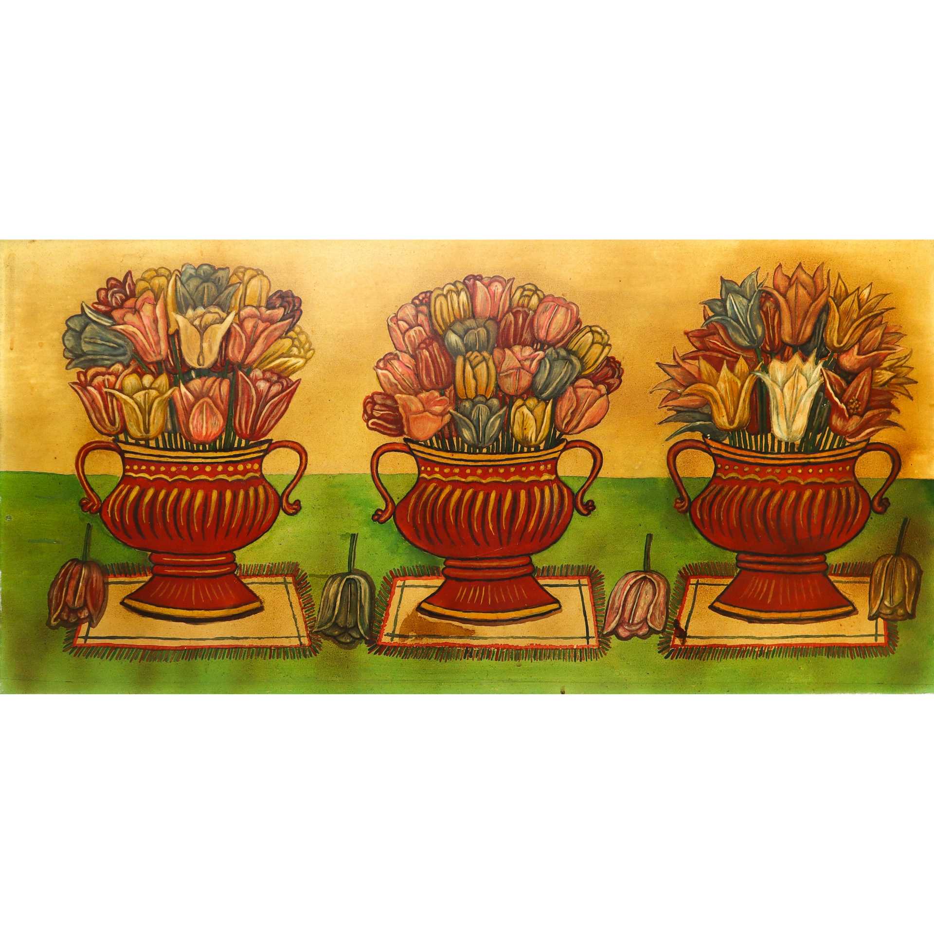 Vasi di tulipani h cm 50X99 in cornice h cm 70X120 olio su masonite Dipinto in cornice d'epoca