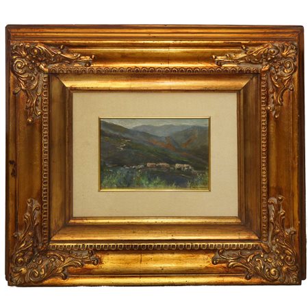 Eugenio Viti (Napoli 1881-1952) - Paesaggio di montagna h cm 19X14,5 in cornice 48X54 olio su cartone telato