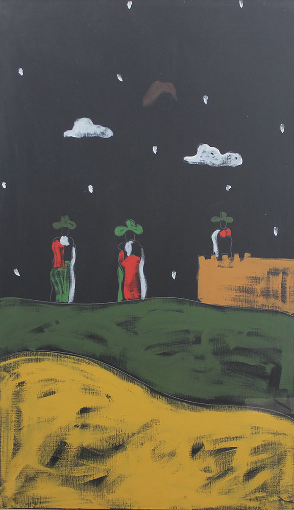 Festa Tano Guardiani del Castello acrilico su tela, cm. 100x60 firmato al...