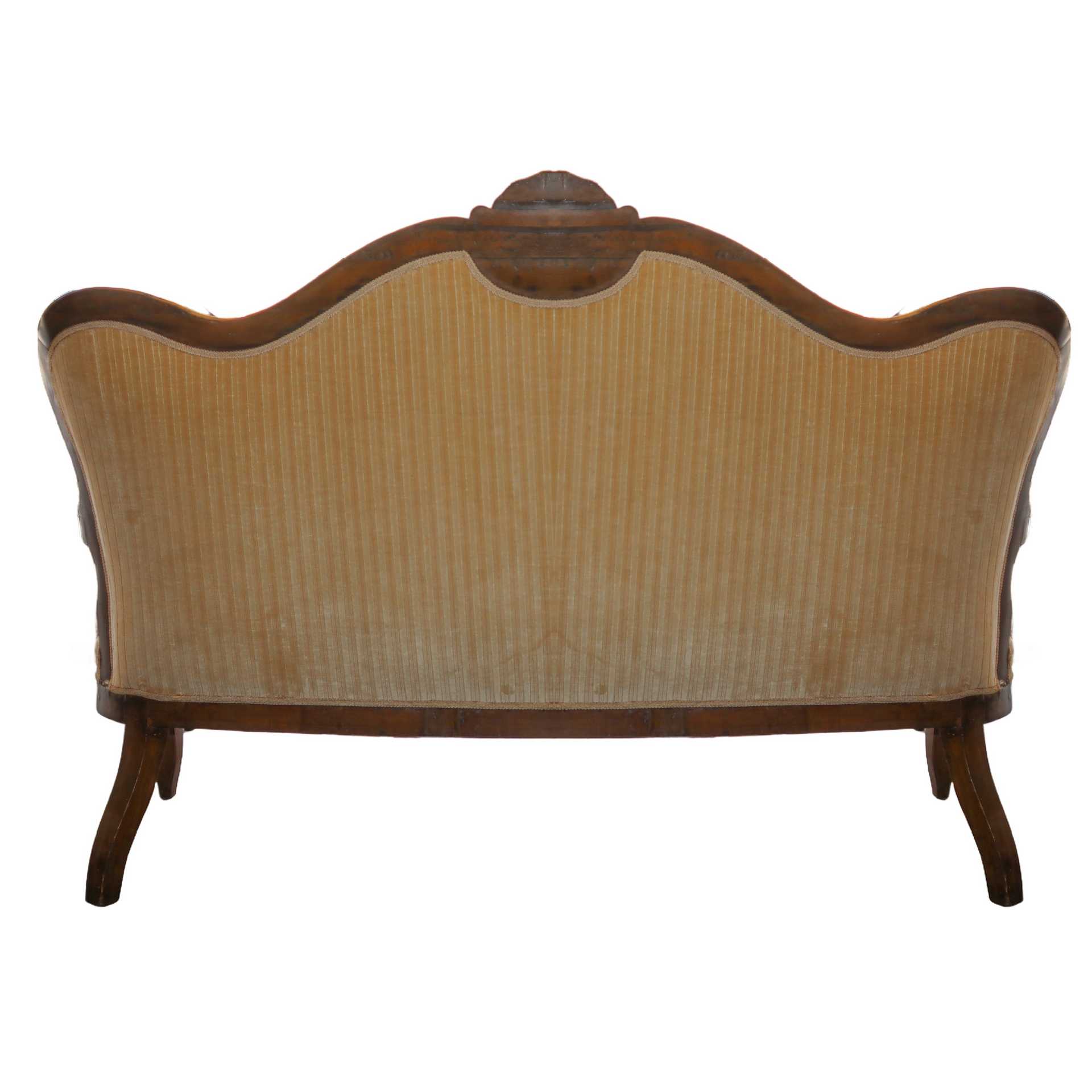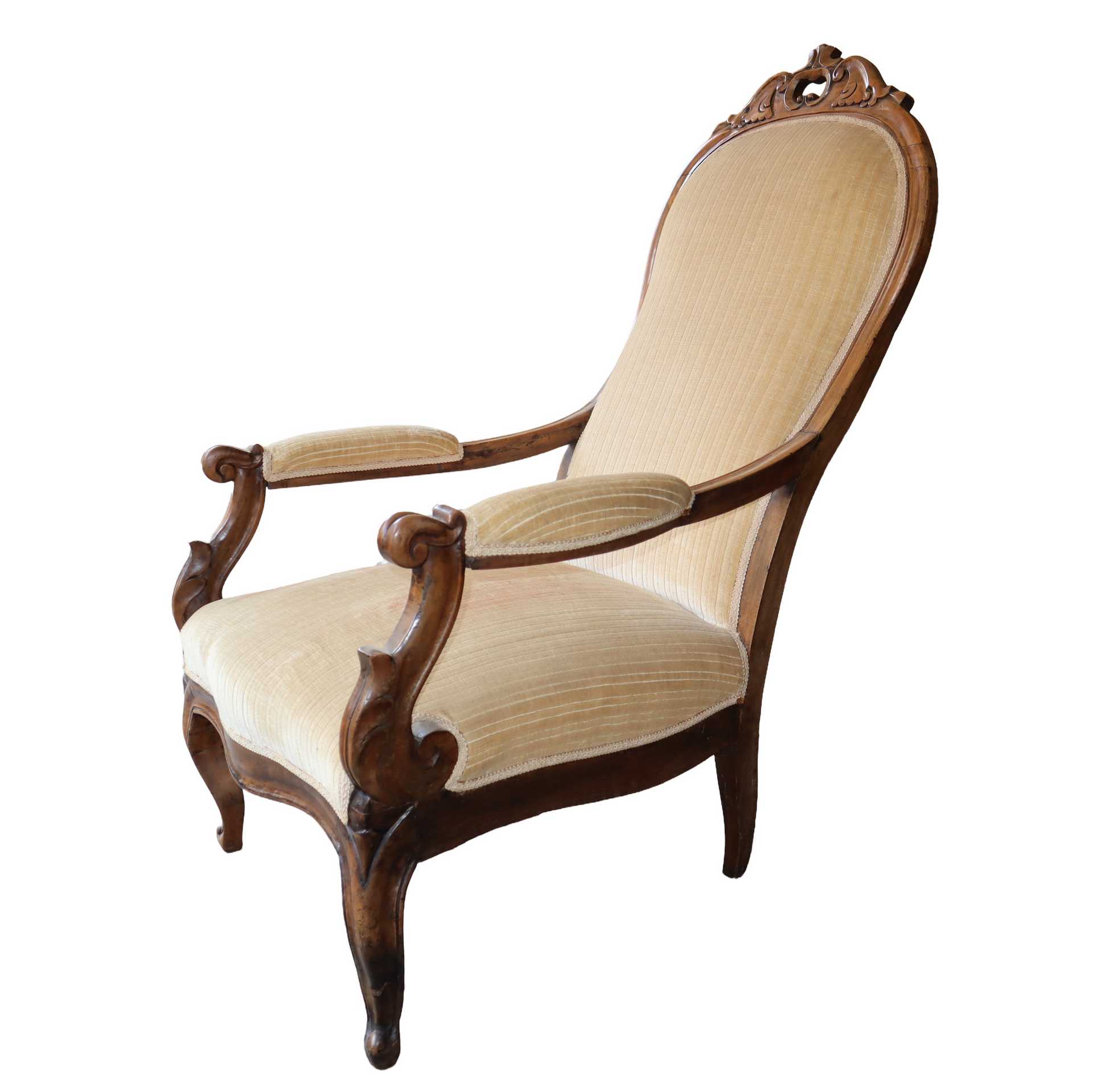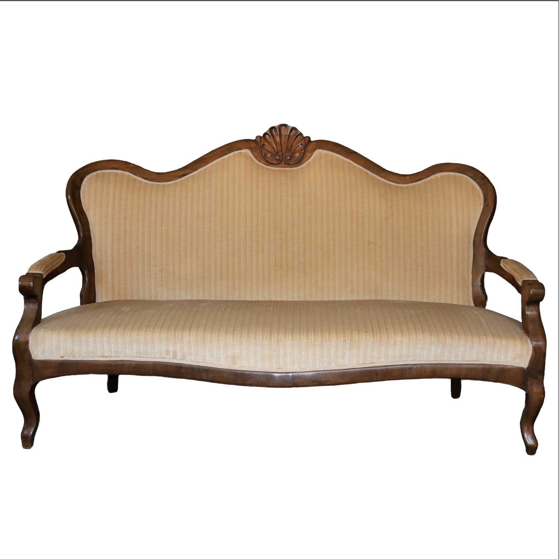Salotto composto da 2 poltrone e un divano tappezzato in velluto beige Divano cm h 115 x 179 x 80, poltrona femminile h cm 114 x 68 x 57 e maschile cm 118 x 65 x 58