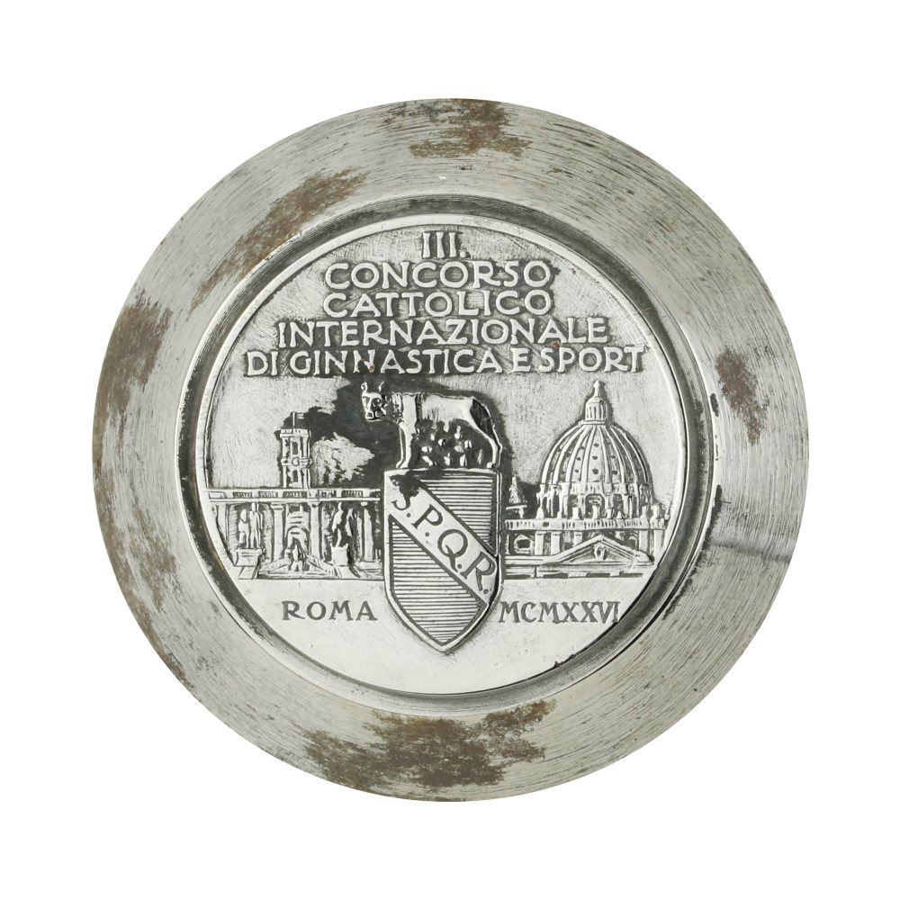 P IIi Concorso cattolico internazionale di ginnastica e sport Roma SPQR MCMXXVI 36 x 34 mm