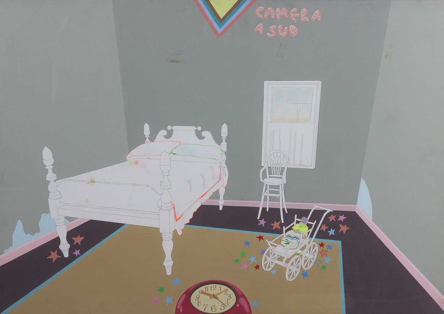 Alinari Luca Camera a Sud acrilico su tela, cm. 70x100 firmato in basso a destra, timbri della galleria Il Castello di Adria al retro, certificato di autenticità dell'artista con timbro e firma della galleria Il Castello di Adria su fotografia
