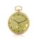C. openface, 14K yellow gold with engraved vertical decorations and engraved band. D. two-tone champagne with painted indexes and Arabic numerals, subsidiary seconds. M. rhodium finished with anchor escapement, keyless dress. Dial, case and movement signed.
